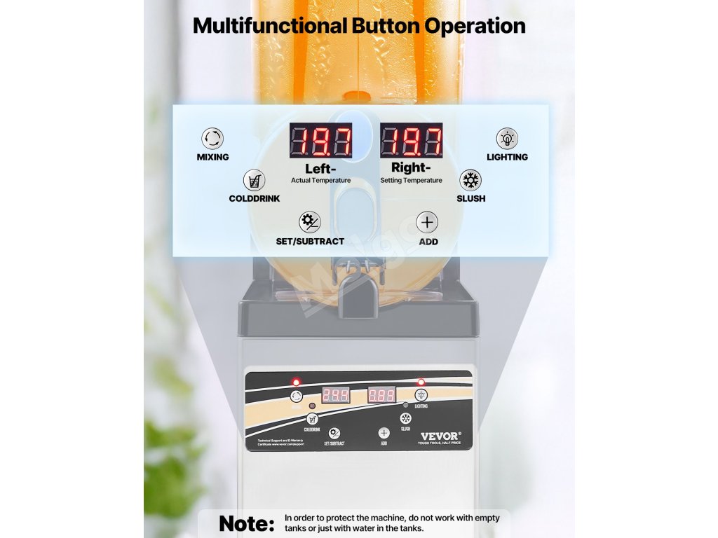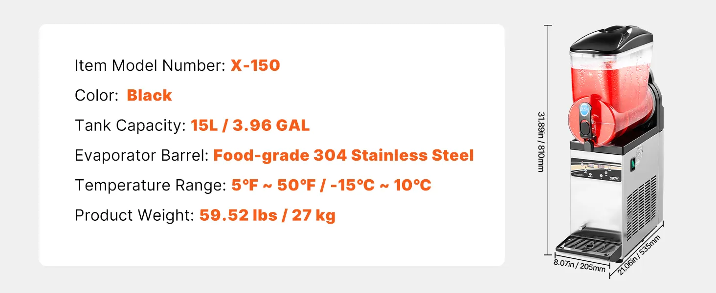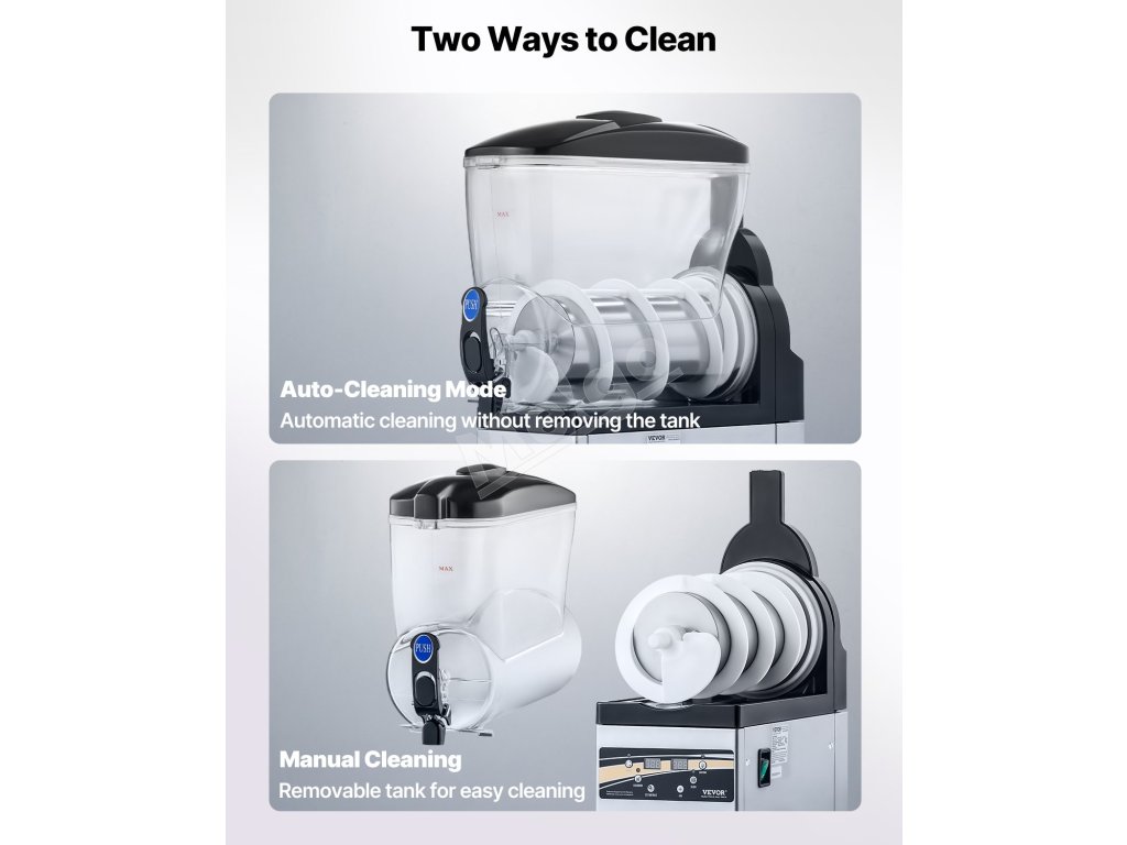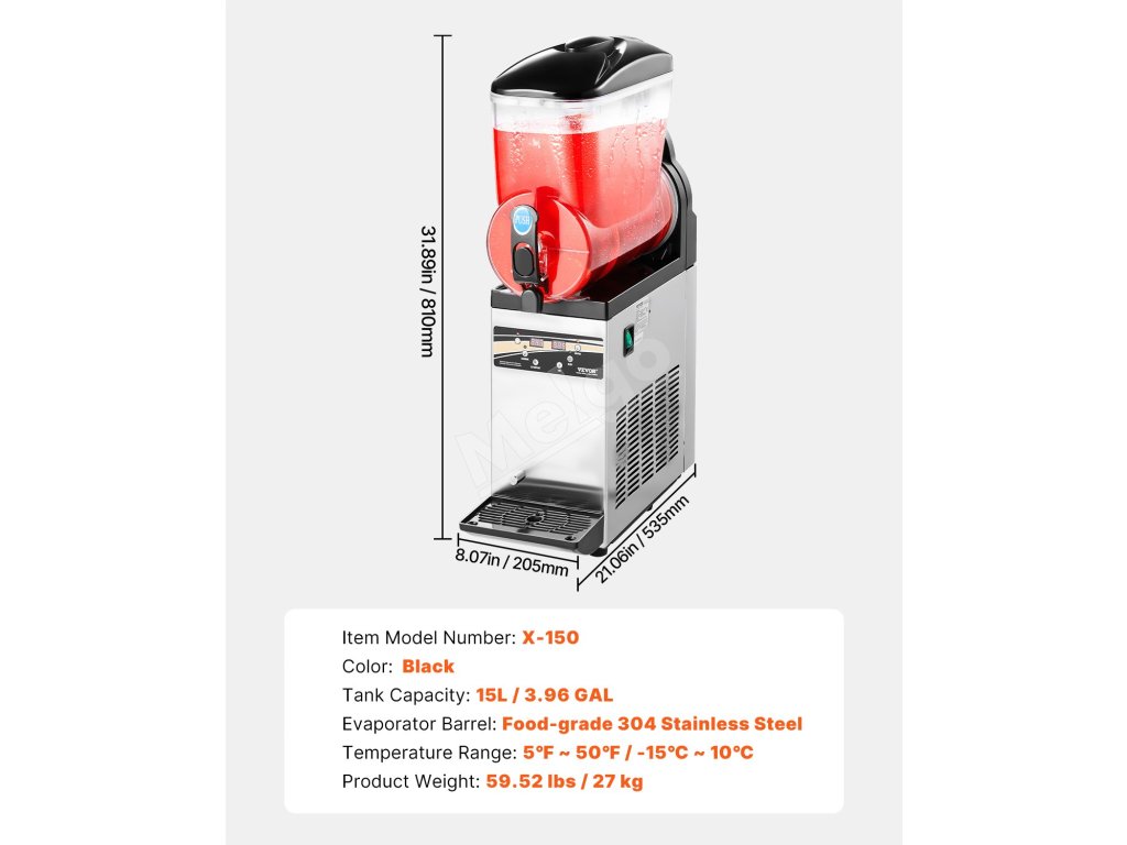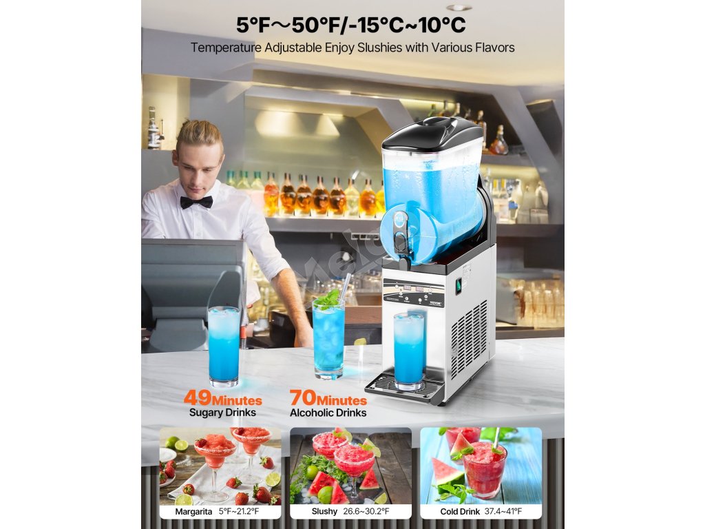 Tento komerčný stroj na prípravu ľadovej triešte má nádrž s objemom 15 l s telom z nehrdzavejúcej ocele a nádržou z PC, ktorá ponúka odolné a zdravotne nezávadné materiály.