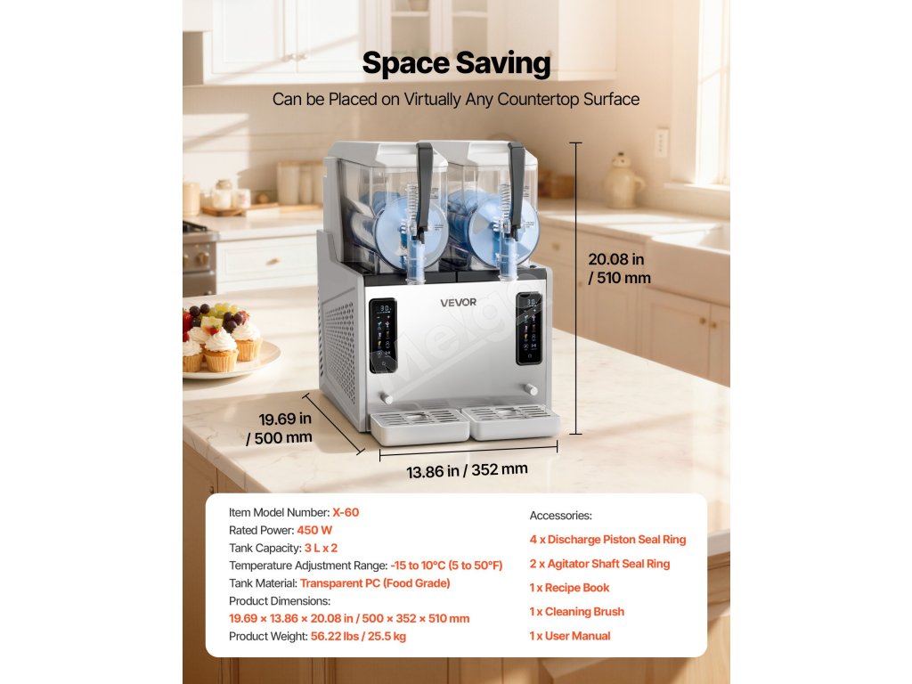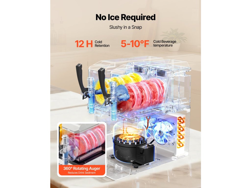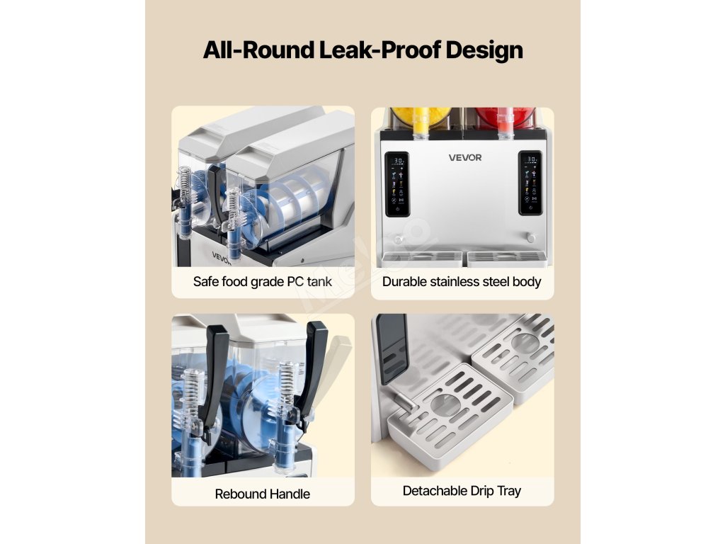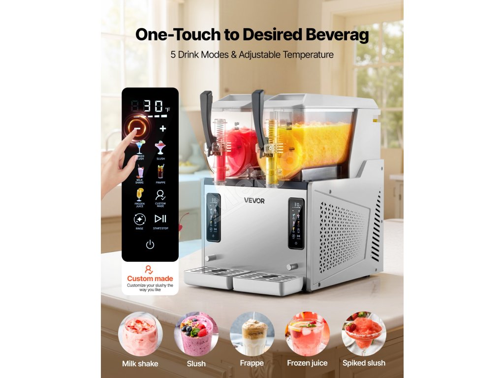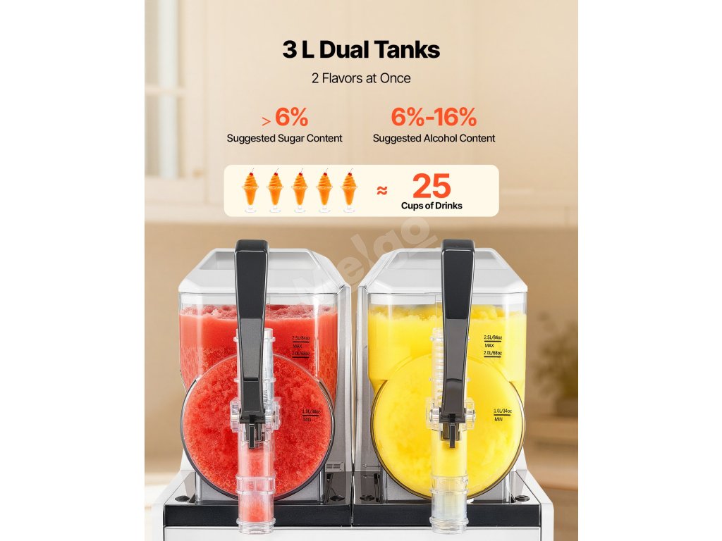 Stroj na slushie, 2×3 l nádrže, bez potreby ľadu, samočistenie