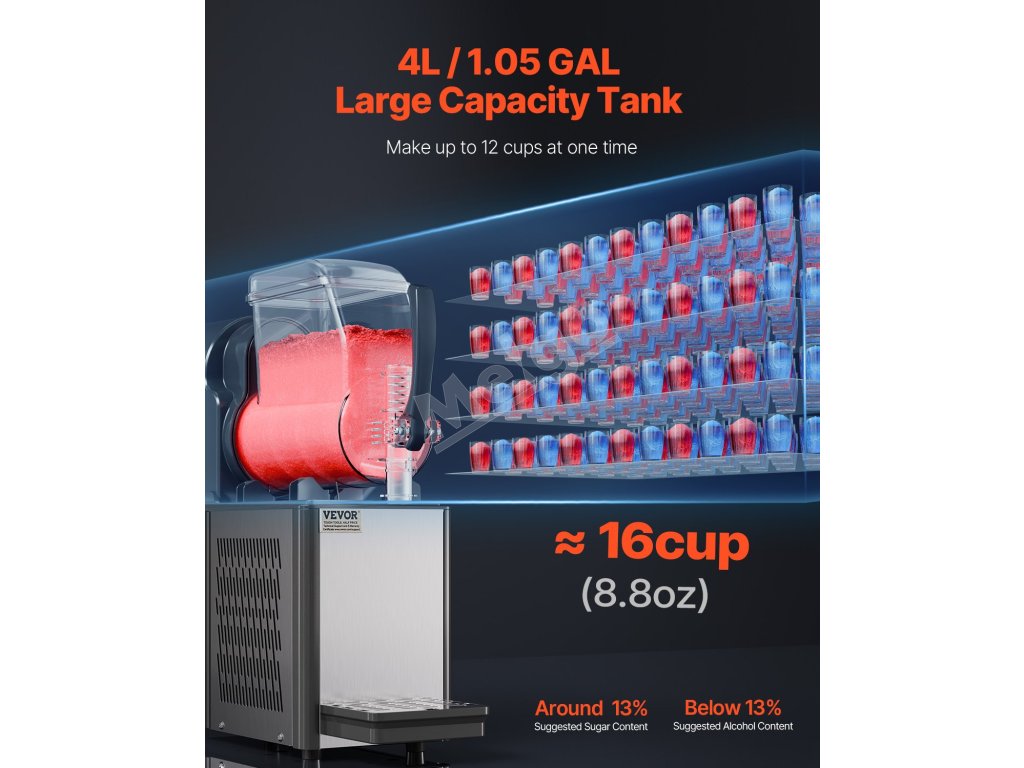 Stroj na slushie 4L jednokomorový, 16 cups, nerez pre kaviarne a bary