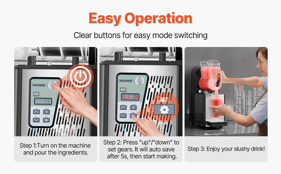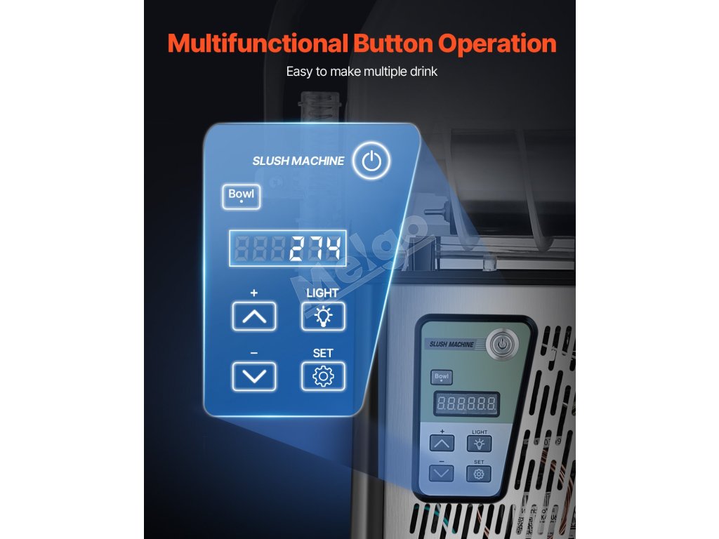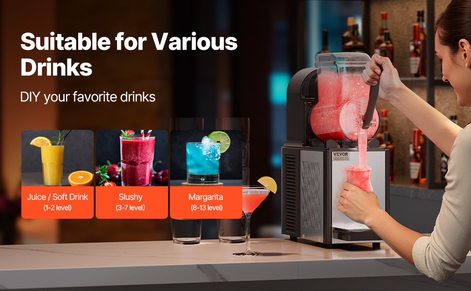 Vylepšený prístroj na výrobu slushies ponúka 15 nastaviteľných úrovní, ktoré vám umožňujú regulovať teplotu na dosiahnutie dokonalej mäkkosti alebo tvrdosti vašich slushies, vďaka čomu je vhodný na prípravu rôznych nápojov vrátane džúsov, ľadovej kávy, čaju a dokonca aj margarity.