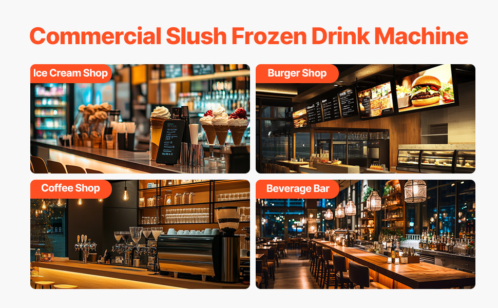 Tento výrobník bahna je ideálny na použitie v komerčných scenároch, ako sú zmrzlinárne, hamburgery, kaviarne, bary a malé stánky, a je ideálny pre priestory s vysokou návštevnosťou.