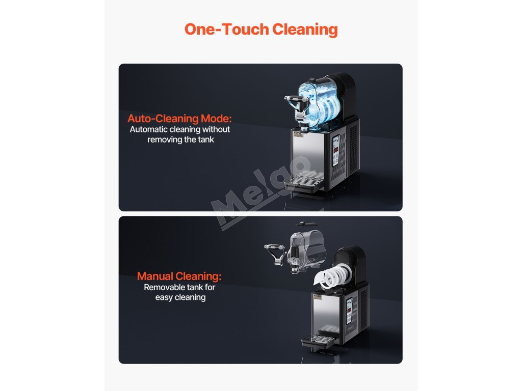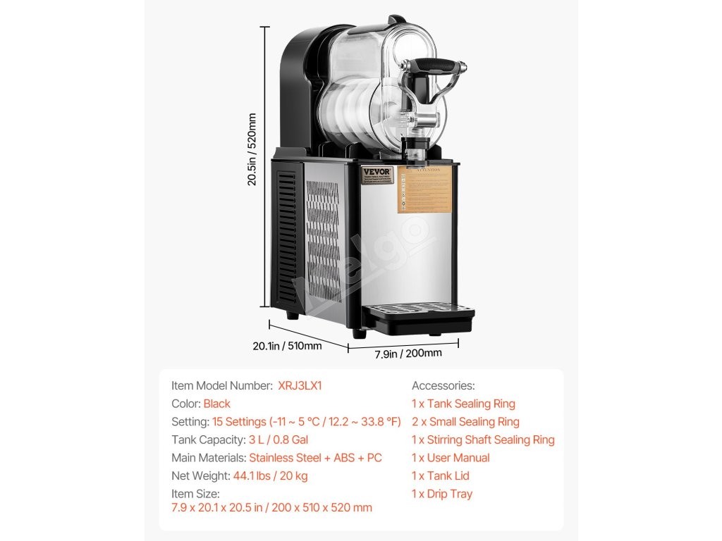 Tento mini prístroj na výrobu slushy má nádrž s objemom 3 l / 0,8 GAL, telo z nehrdzavejúcej ocele a nádrž z PC, ktoré ponúkajú odolné a zdravé materiály.