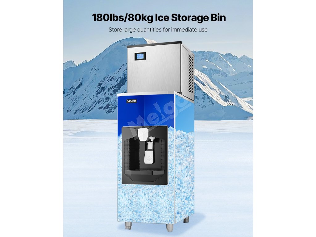 Automatický zásobník na ľad (zásobník na ľad) pojme až 180 libier / 80 kg ľadu, čím zabezpečí dostatočné zásoby pre vaše potreby.