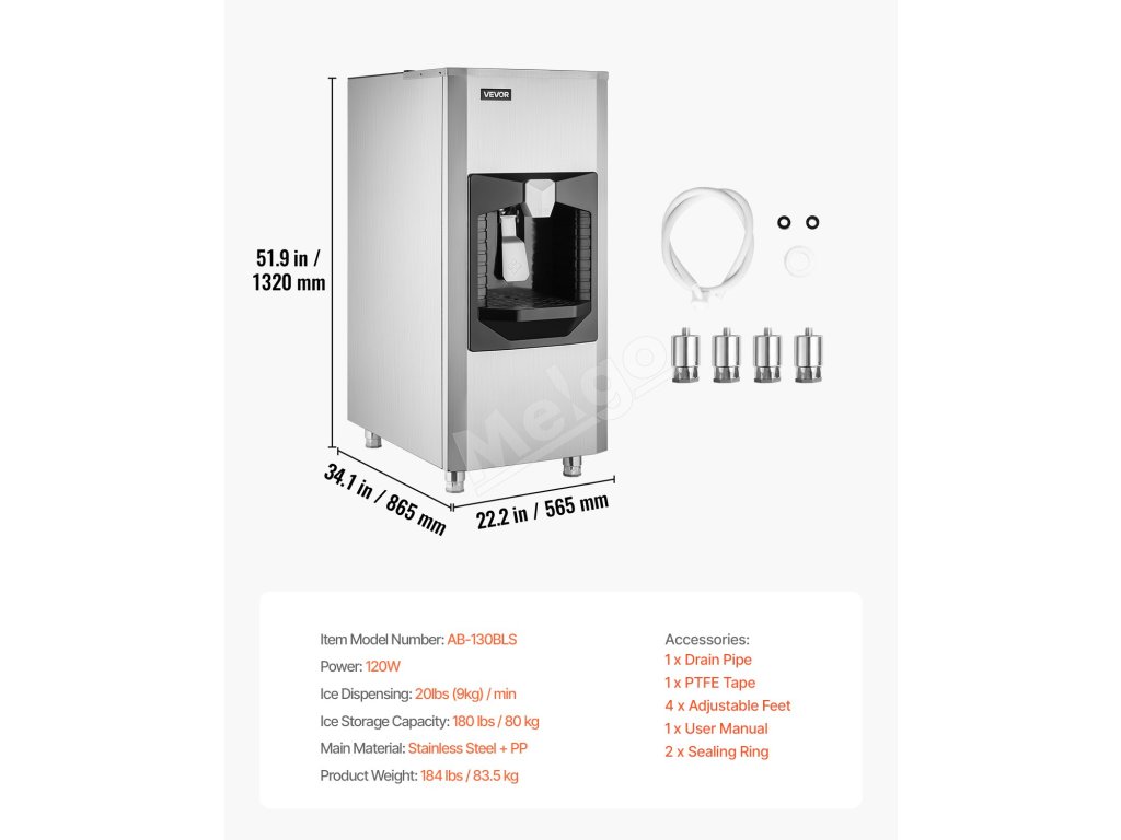 Dávkovač ľadu kapacita 180 lbs, 20 lbs/min, drvič, nastaviteľné nohy