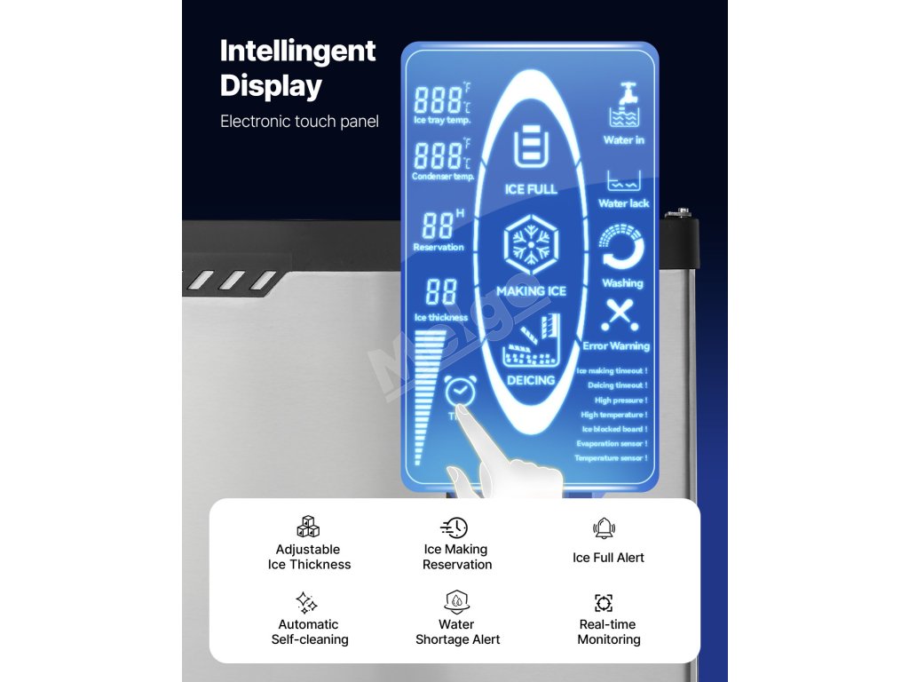Táto komerčná hlava na výrobu ľadu poskytuje nepretržitú dodávku ľadu a je vybavená inteligentným ovládacím panelom na jednoduché ovládanie a pohodlné plánovanie. Jej samočistiaca funkcia jedným dotykom zabezpečuje jednoduchú údržbu a hygienickú výrobu ľadu, takže je ideálna pre reštaurácie, bary, hotely, kaviarne a iné komerčné zariadenia.
