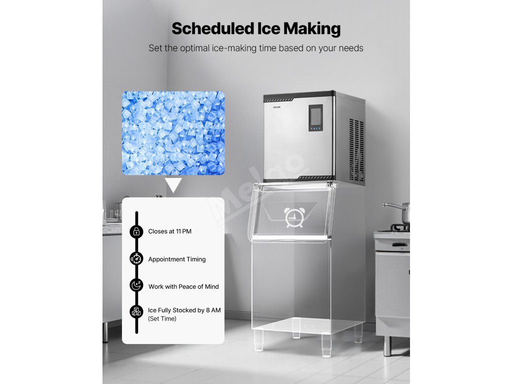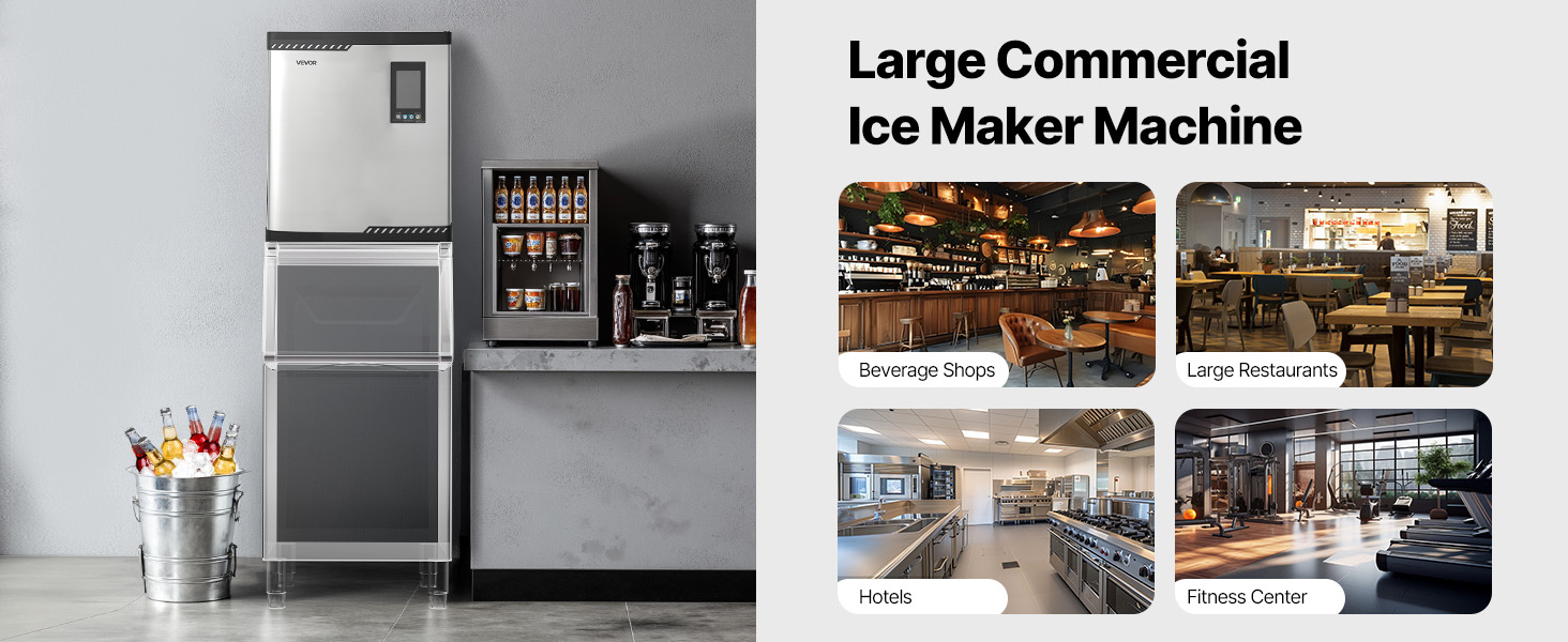 Výrobník kociek ľadu poskytuje veľký výkon ľadu, vďaka čomu je ideálny pre komerčné kuchyne, reštaurácie, bary, hotely a predajne nápojov.