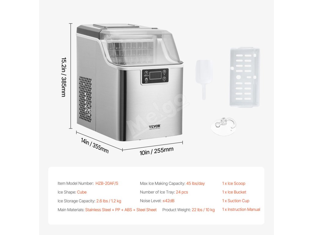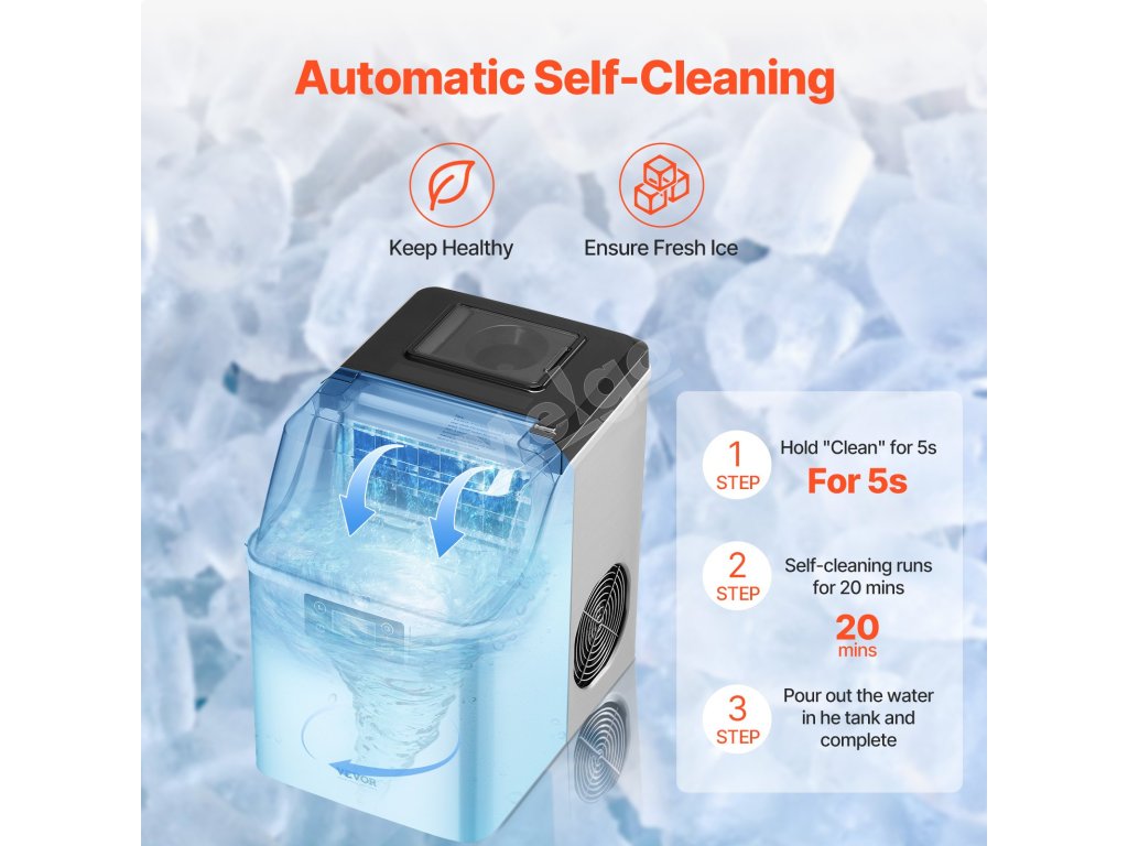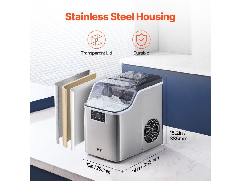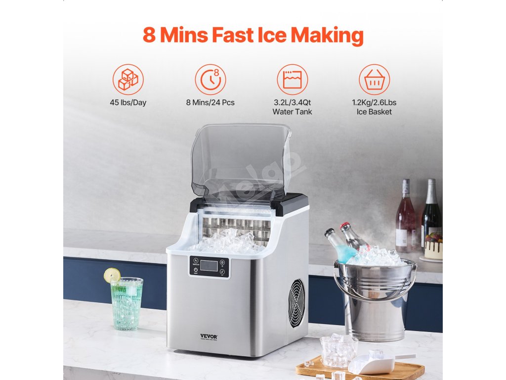 Tento stolový výrobník ľadu dokáže vyrobiť 45 libier ľadu za 24 hodín a 24 kociek ľadu len za 15 minút. Vďaka kapacite 2,6 lbs / 1,2 kg ľadu a dlhotrvajúcej izolácii je vždy pripravený poskytnúť čistý ľad, takže si môžete kedykoľvek vychutnať studené nápoje.
