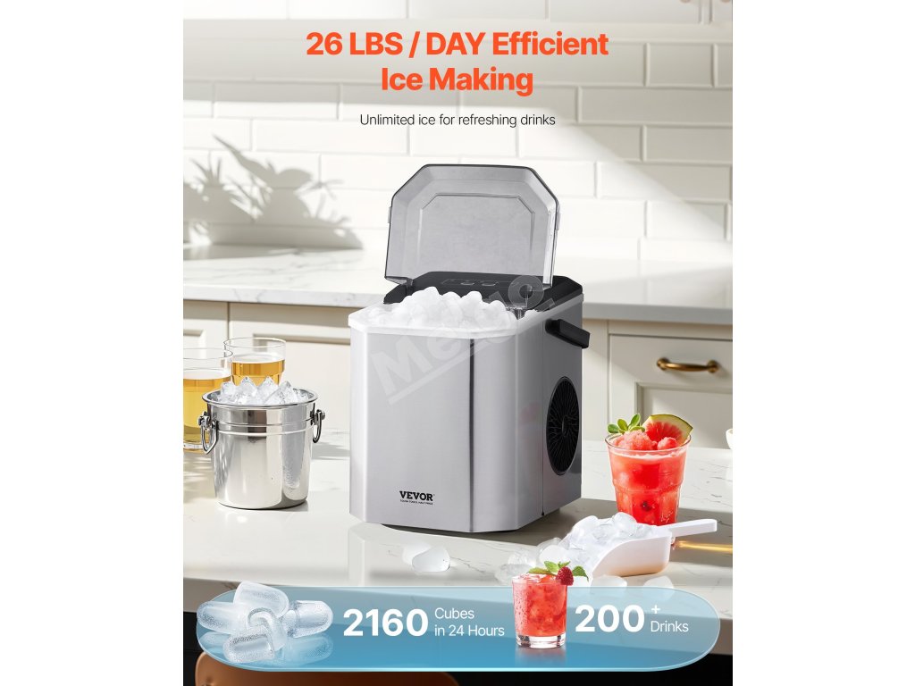Stolový výrobník ľadu, 9 kociek za 6 min, 26lbs/24h, samočistiaci