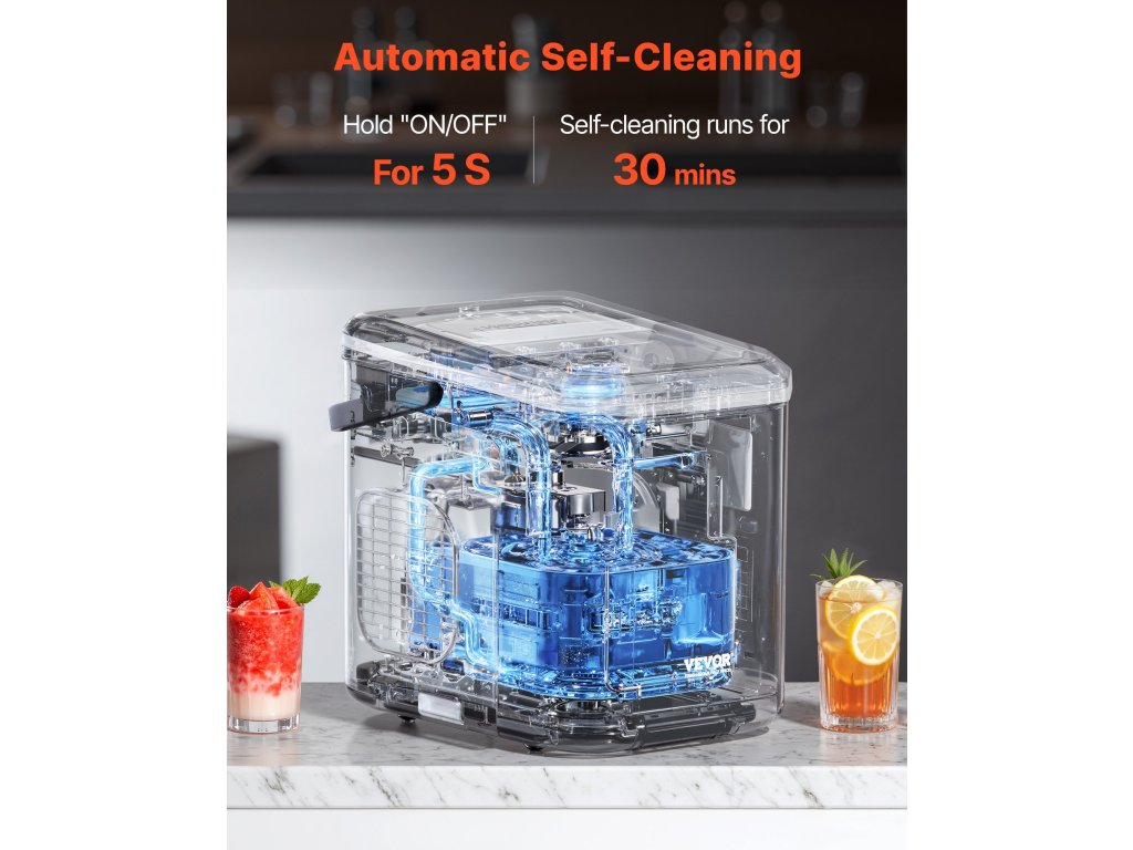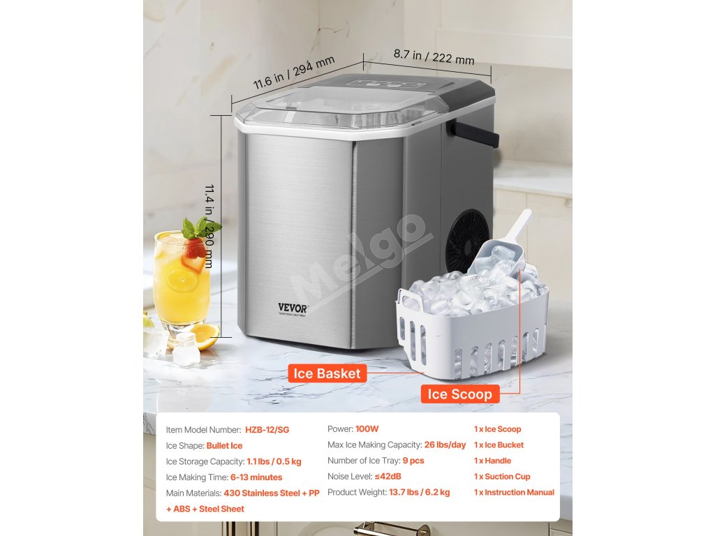 Tento stolový výrobník ľadu dokáže vyrobiť 26 libier ľadu za 24 hodín a 9 kociek len za 6 minút. S kapacitou 1,1 lb ľadu a dlhotrvajúcou izoláciou je ideálny na večierky a pikniky - stačí ho vziať a ísť! Poskytuje čistý ľad vždy, keď ho potrebujete, takže si môžete kedykoľvek vychutnať studené nápoje.