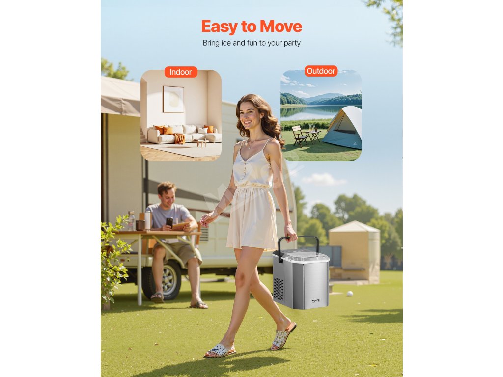 Prenosný stroj na výrobu ľadu je vybavený rukoväťou na jednoduché prenášanie, takže je ideálny na večierky, vonkajšie aktivity, do kancelárií, reštaurácií a kuchýň.