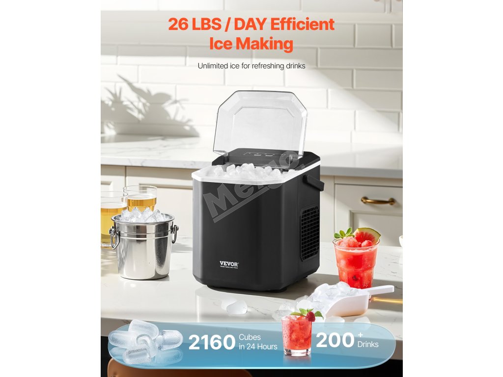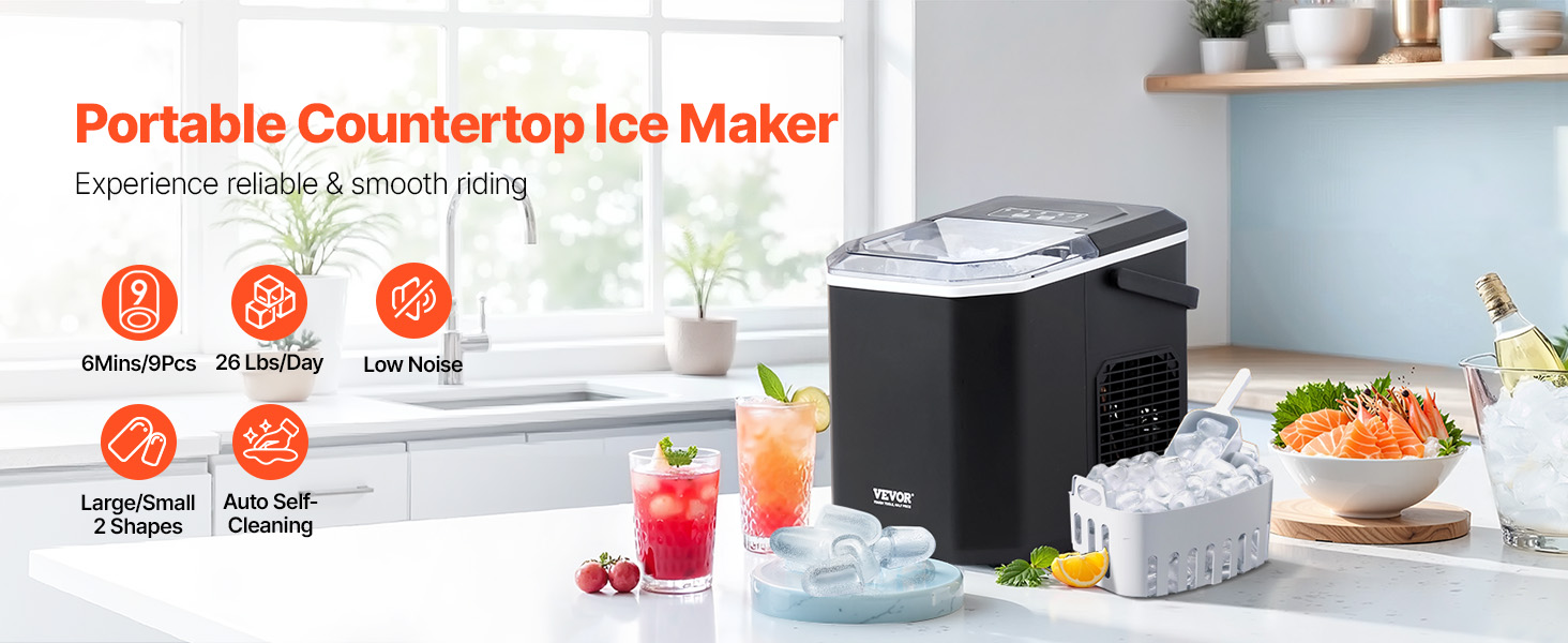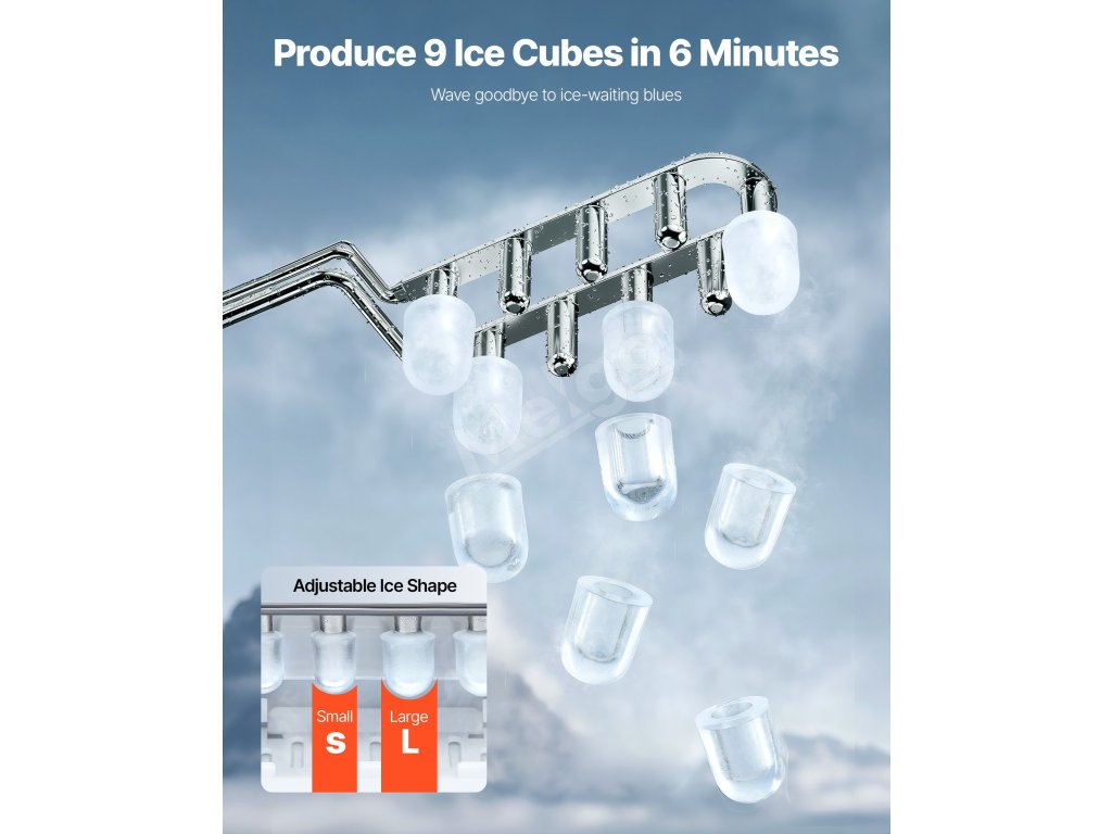 Stolový výrobník ľadu 9 kostiek za 6 min, 26 lbs/24 h, prenosný