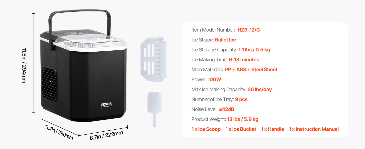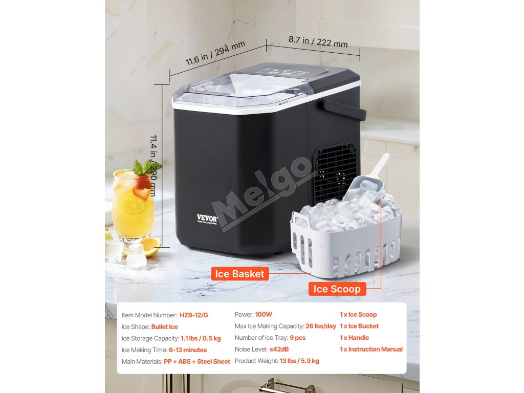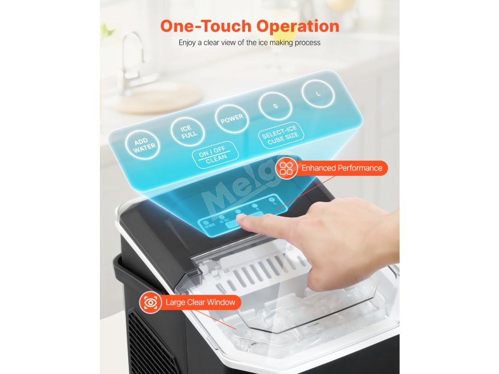 Tento stolový výrobník ľadu dokáže vyrobiť 26 libier ľadu za 24 hodín a 9 kociek len za 6 minút. S kapacitou 1,1 lb ľadu a dlhotrvajúcou izoláciou je ideálny na večierky a pikniky - stačí ho vziať a ísť! Poskytuje čistý ľad vždy, keď ho potrebujete, takže si môžete kedykoľvek vychutnať studené nápoje.