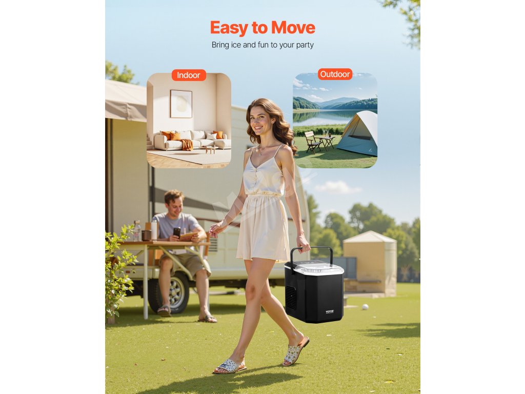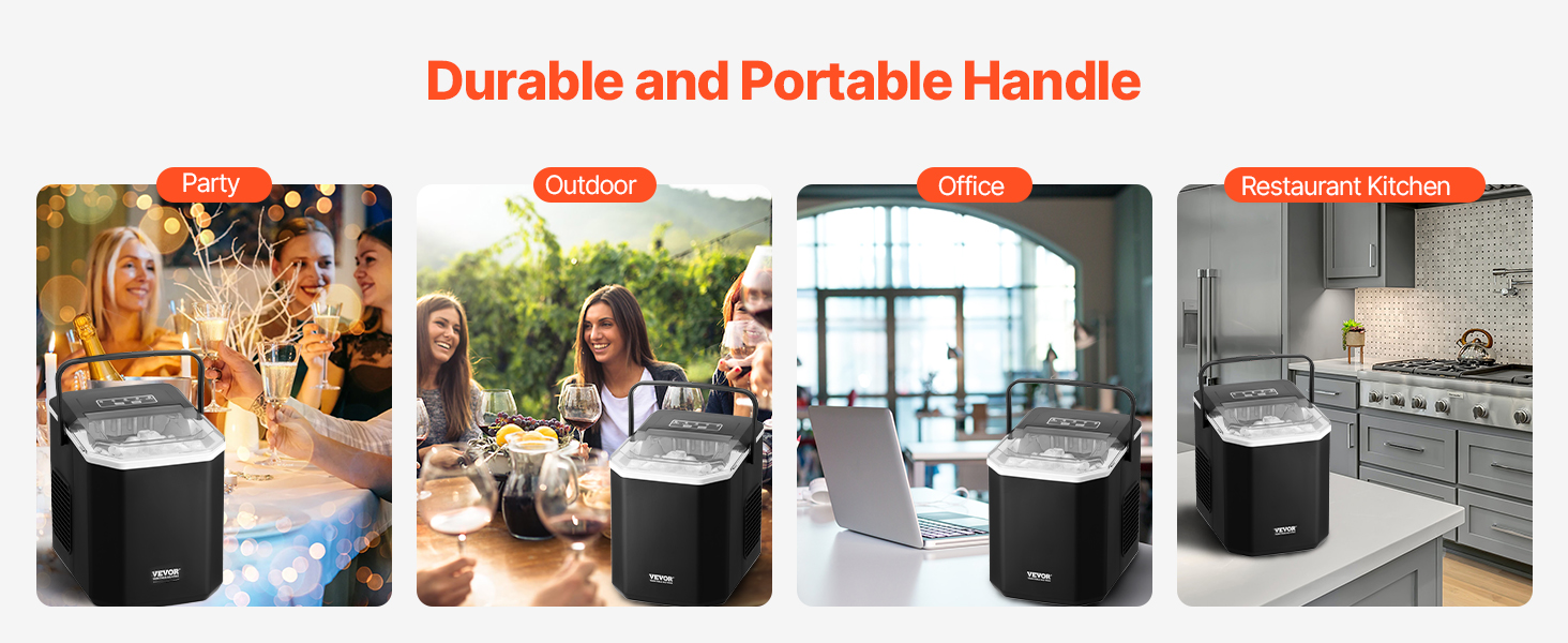 Prenosný stroj na výrobu ľadu je vybavený rukoväťou na jednoduché prenášanie, takže je ideálny na večierky, vonkajšie aktivity, do kancelárií, reštaurácií a kuchýň.
