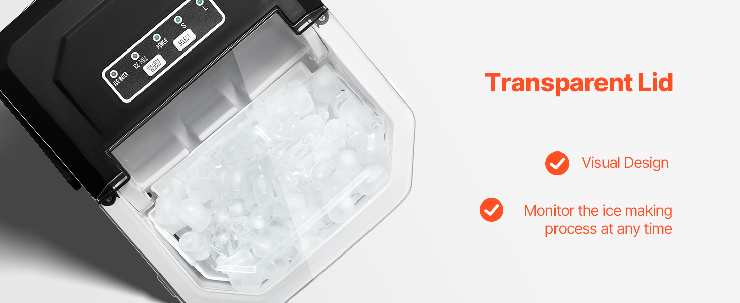 Malý výrobník ľadu má vizuálny dizajn, ktorý umožňuje priamo sledovať proces výroby ľadu bez častého otvárania veka na kontrolu hladiny ľadu.