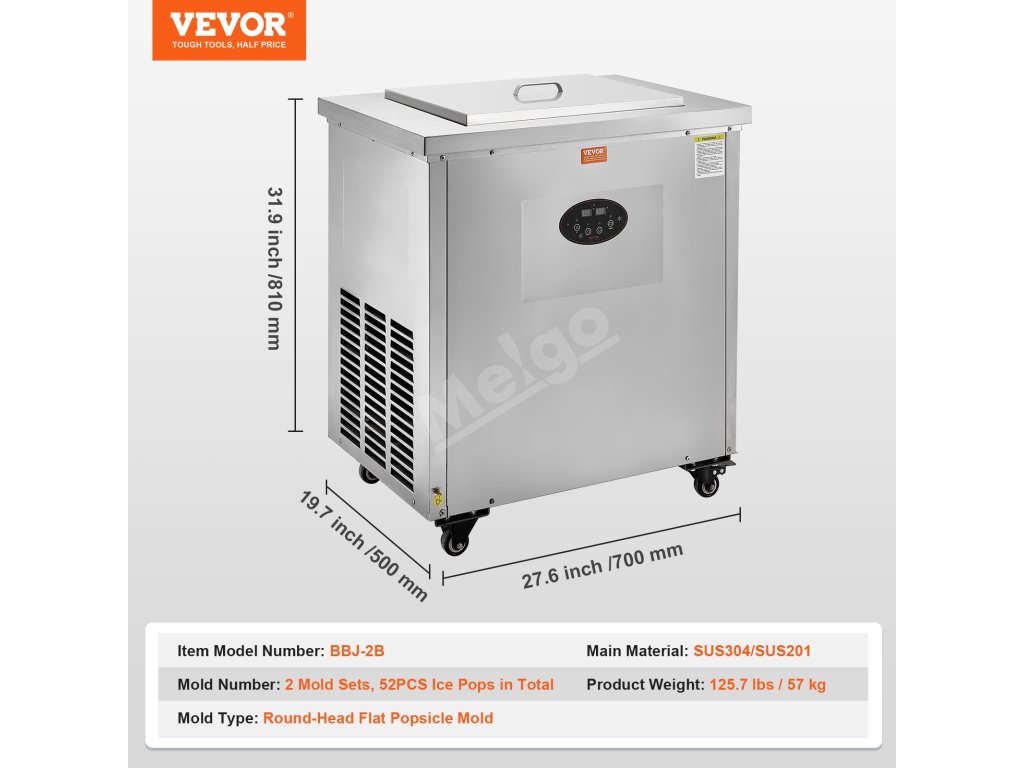 Komerčný prístroj na nanuky VEVOR sa rýchlo schladí len za 40 minút, čo vám umožní vytvoriť rozmanitú škálu príchutí nanukov. S 2 formami nastavenými na súčasnú výrobu 52 ks nanukov sa môže pochváliť dennou produkciou až 1872 ks nanukov, čím dokonale uspokojí rôzne chute a požiadavky.
