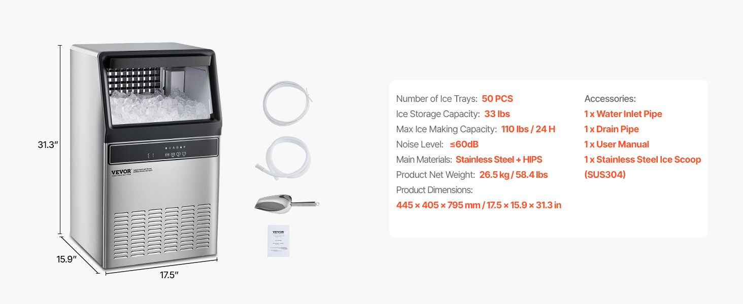 Výrobník ľadu 110lbs/24H, 33lbs zásobník 50 kociek/15 min, s čerpadlom