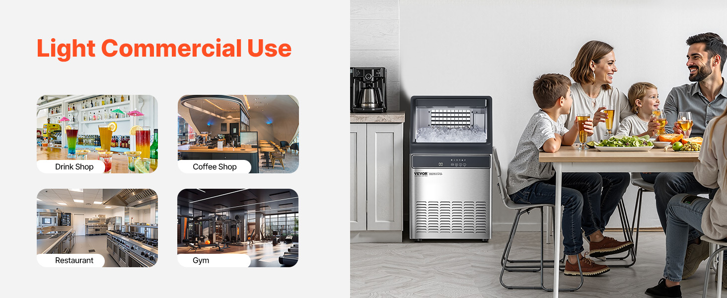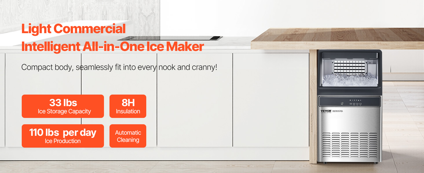 Náš komerčný výrobník ľadu vyrobí 110 libier kociek ľadu za deň a vďaka 8-hodinovej izolačnej funkcii môžete mať kocky ľadu kedykoľvek budete chcieť.