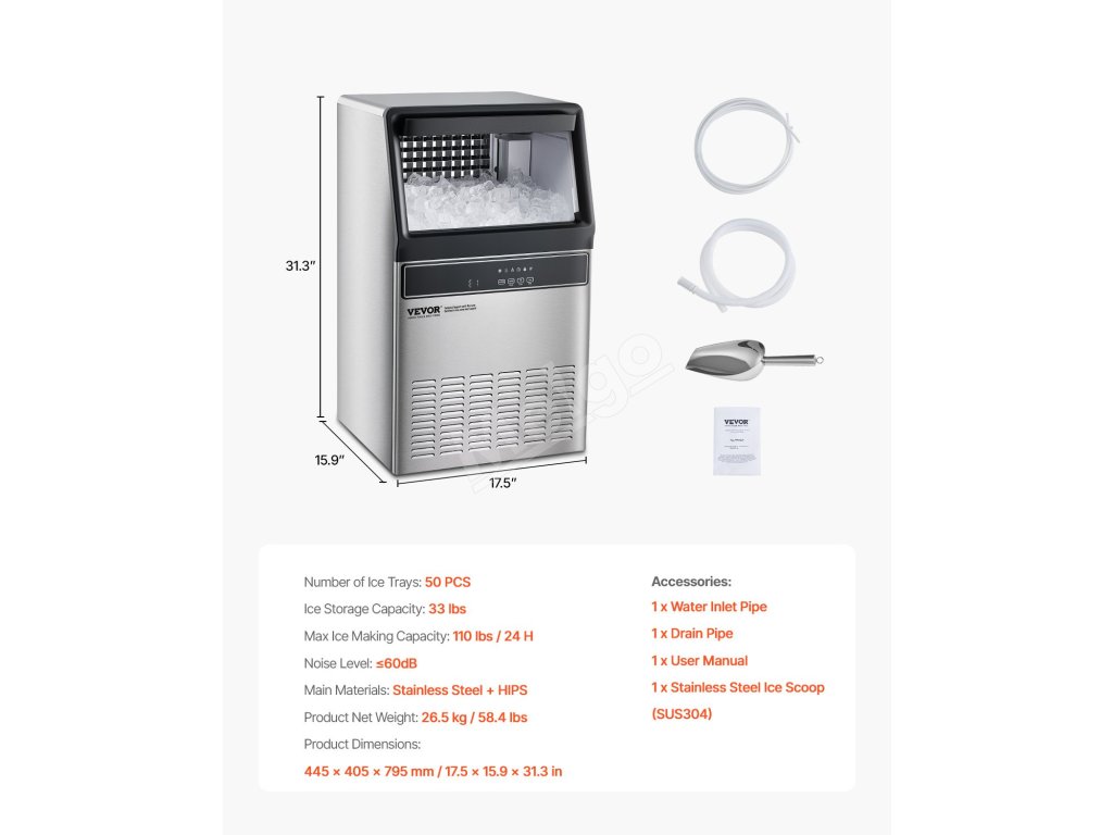 Výrobník ľadu 110lbs/24H, 33lbs zásobník 50 kociek/15 min, s čerpadlom