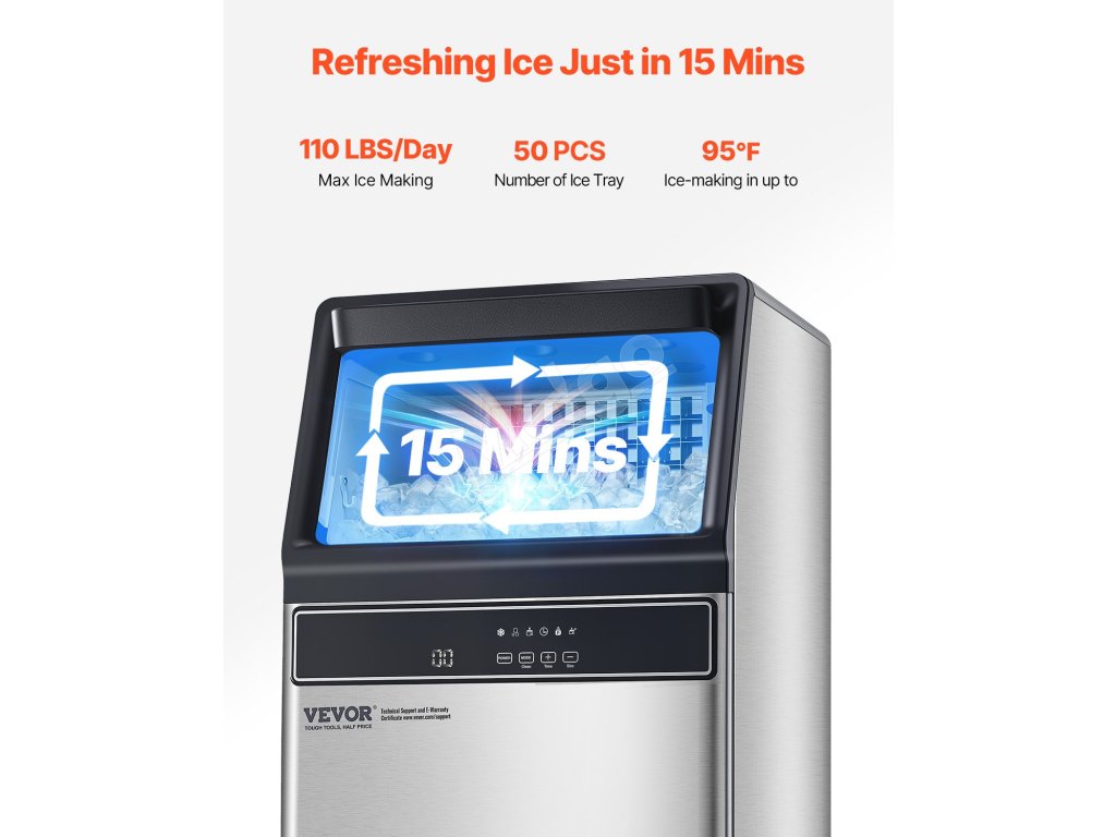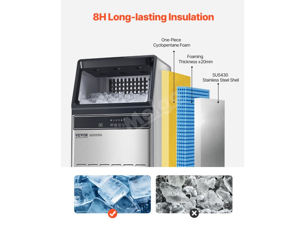 Náš komerčný výrobník ľadu vyrobí 110 libier kociek ľadu denne a vďaka 8-hodinovej izolačnej funkcii môžete mať kocky ľadu kedykoľvek budete chcieť.
