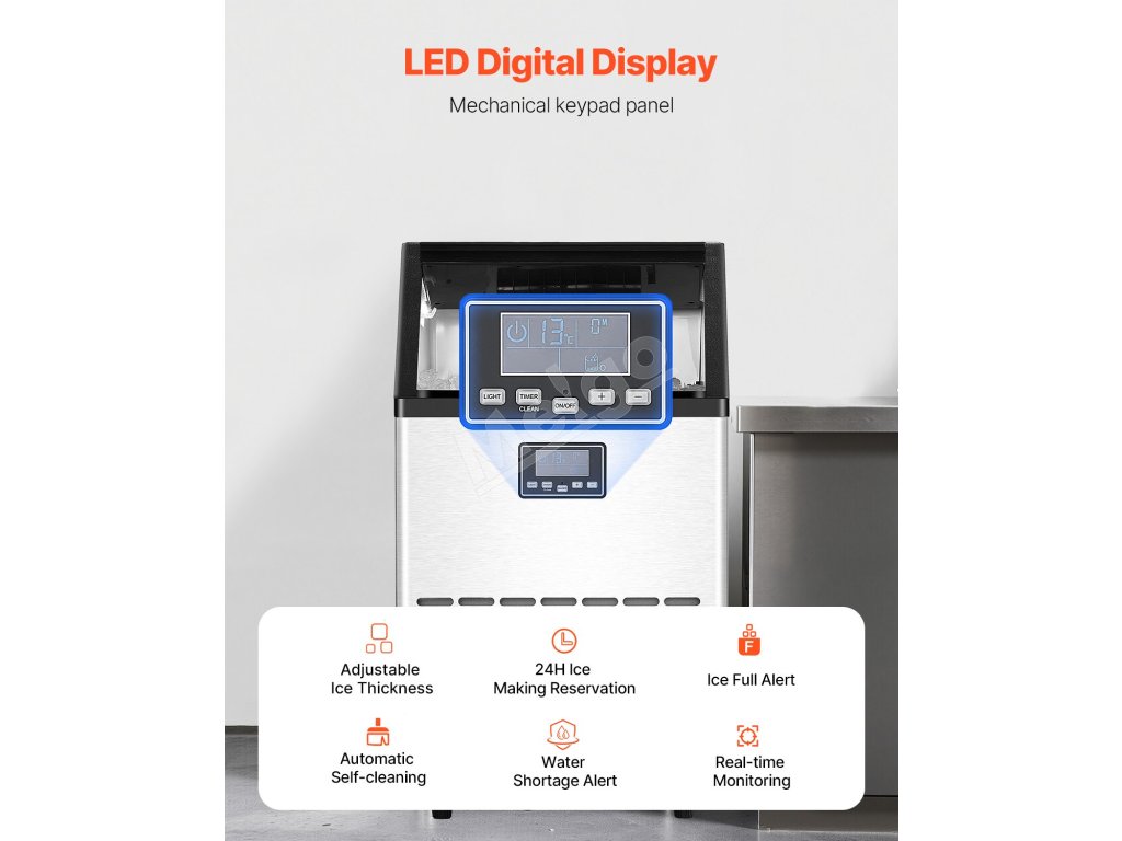 Výrobník ľadu 120lbs/24H, 33lbs zásobník 45 kociek/15 min, led displej