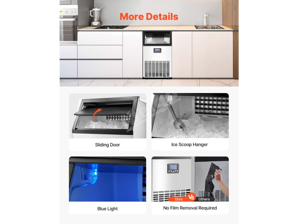 Náš komerčný výrobník ľadu vyrobí 120 libier kociek ľadu denne a vďaka 8-hodinovej izolačnej funkcii môžete mať kocky ľadu kedykoľvek budete chcieť.