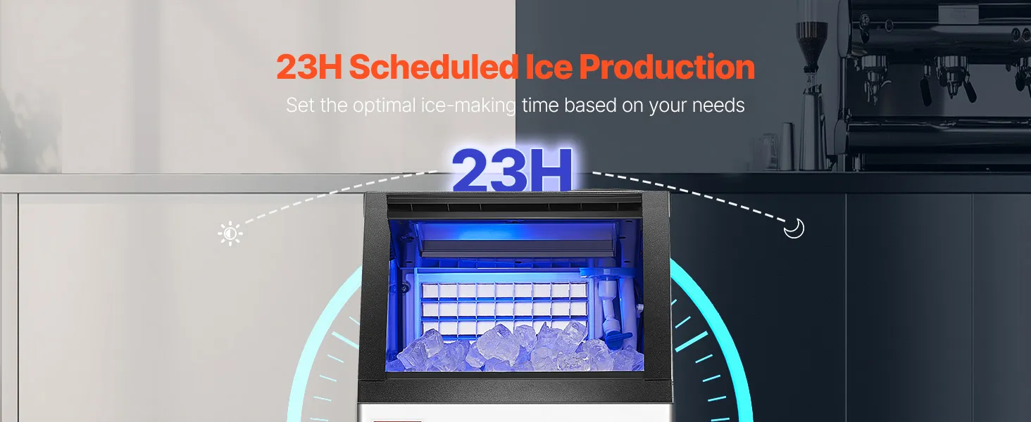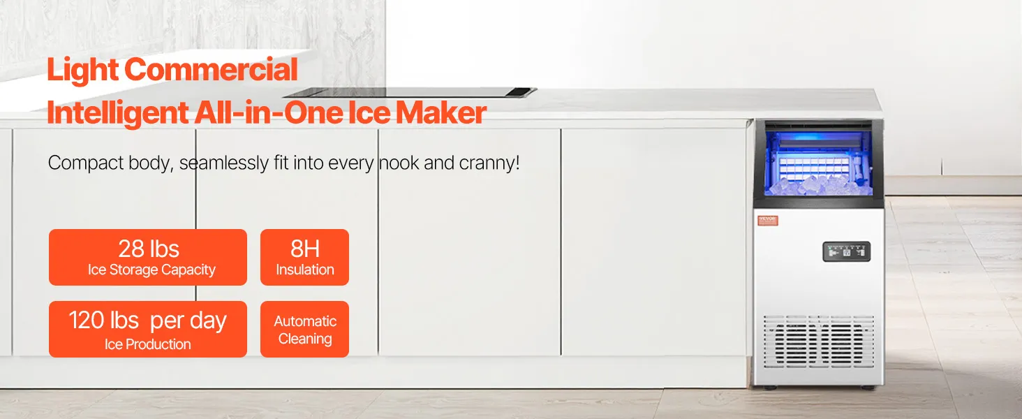 Náš komerčný výrobník ľadu vyrobí 120 libier kociek ľadu denne a vďaka 8-hodinovej izolačnej funkcii môžete mať kocky ľadu kedykoľvek budete chcieť.