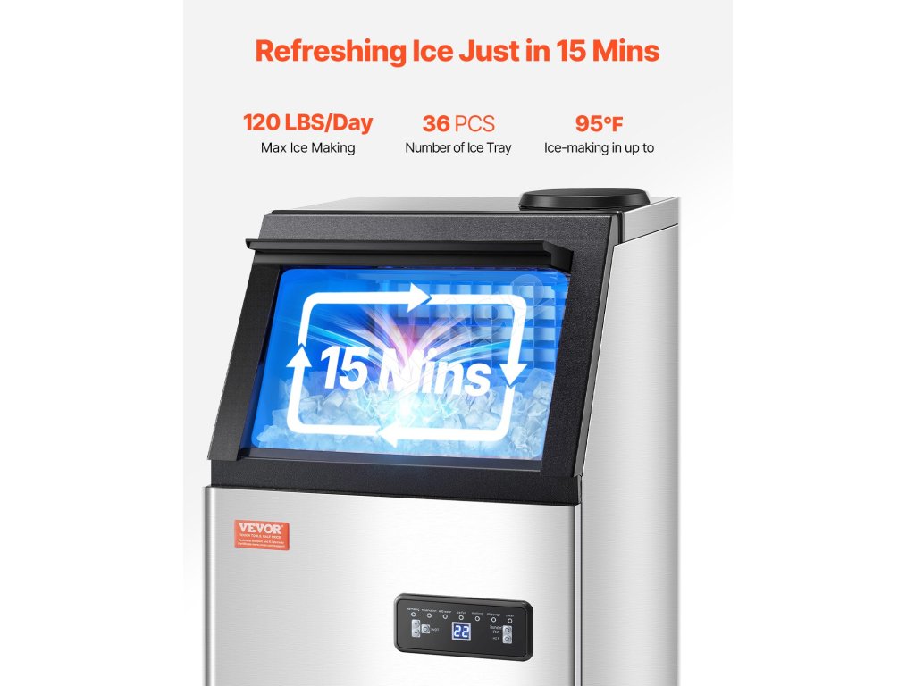 Výrobník ľadu 120lbs/24H, 36 kociek/15 min, 28lbs sklad, samočistenie