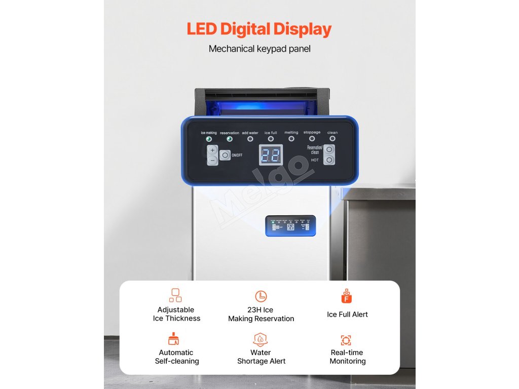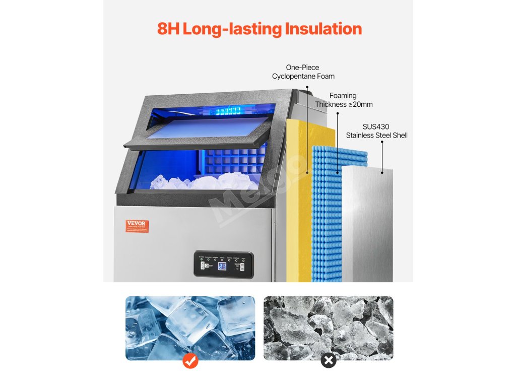 Náš komerčný výrobník ľadu vyrobí 120 libier kociek ľadu denne a vďaka 8-hodinovej izolačnej funkcii môžete mať kocky ľadu kedykoľvek budete chcieť.