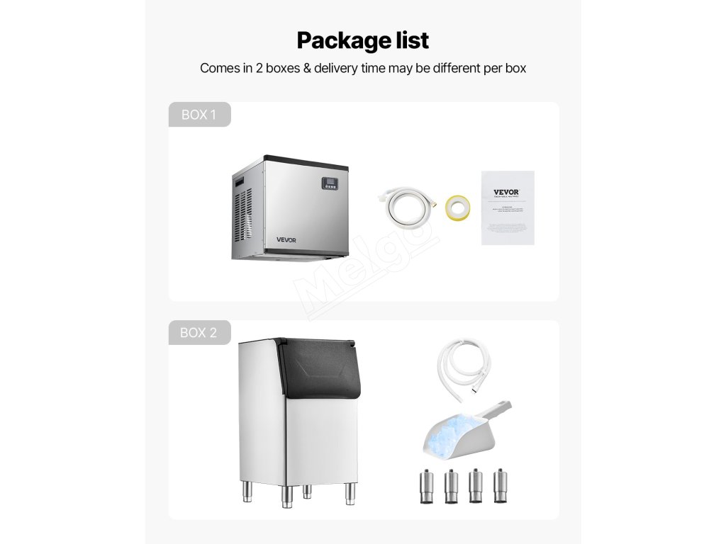 Komerčné výrobníky ľadu sa zvyčajne skladajú z dvoch hlavných častí: hlavnej jednotky na výrobu ľadu a zásobníka na ľad. Táto konštrukcia poskytuje zvýšenú flexibilitu a účinnosť, takže je ideálna pre podniky, domáce kuchyne alebo špecializované aplikácie.
