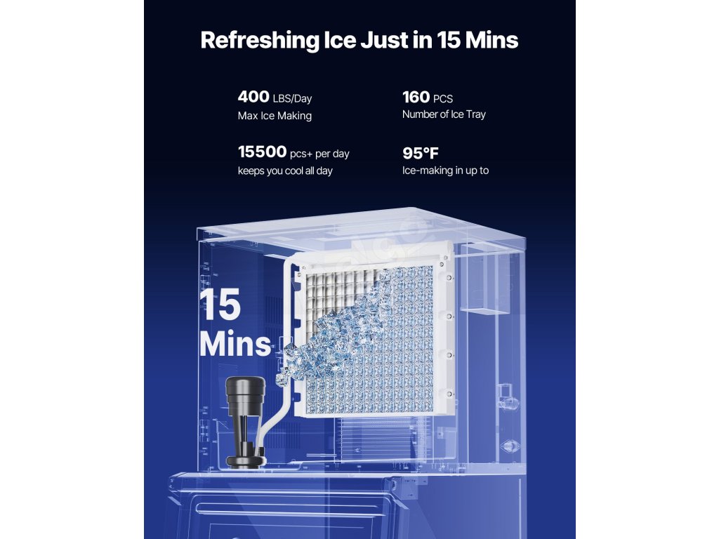 | Maximálna výroba ľadu | 400 libier (181,4 kg) / 24 hodín |