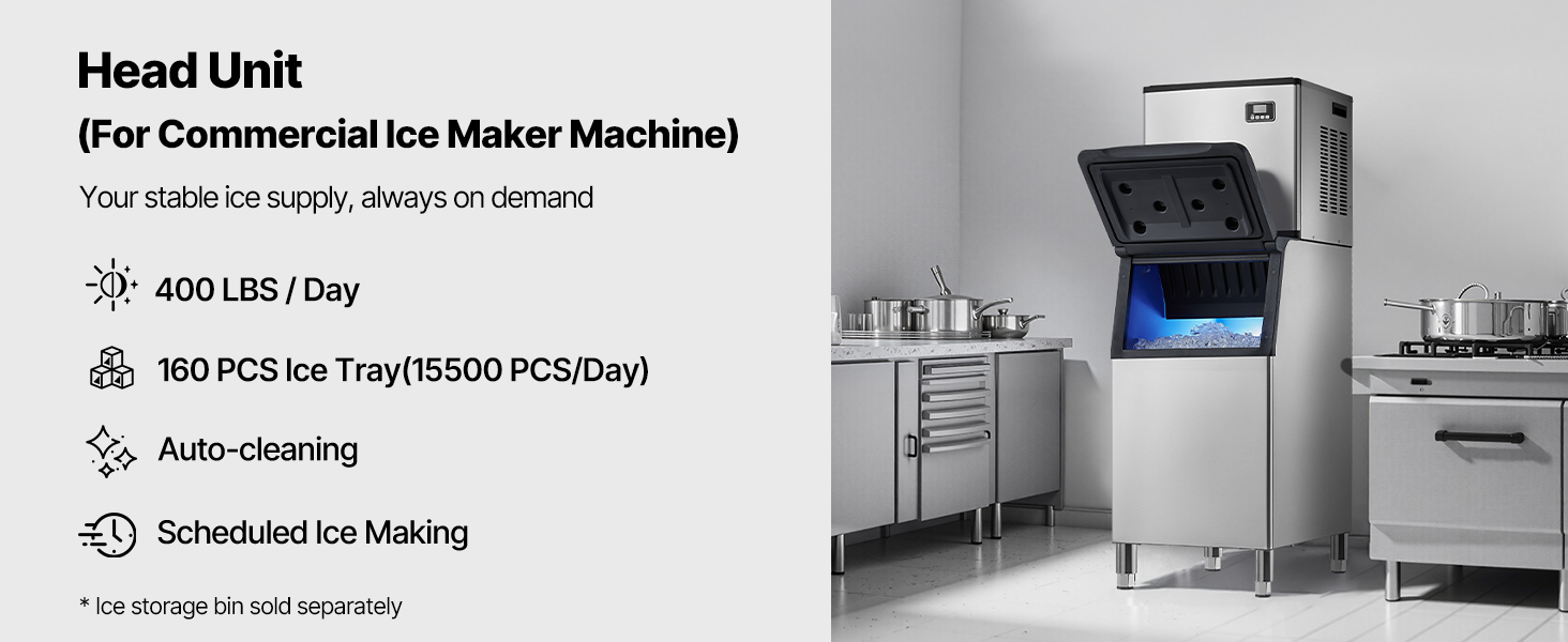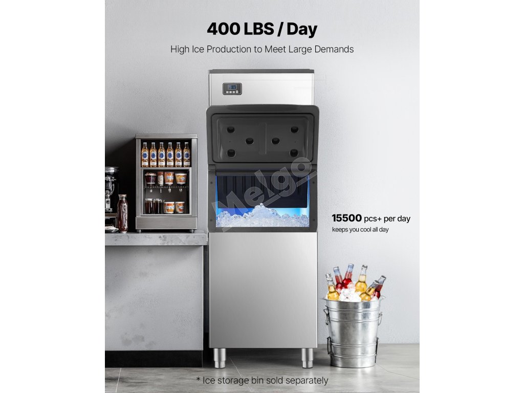 Komerčný výrobník ľadu je vybavený 160 zásobníkmi ľadu a dokáže vyrobiť 400 libier / 181,4 kg (približne 15 500 kusov) ľadu za 24 hodín, čím zabezpečuje nepretržitý prísun ľadu.