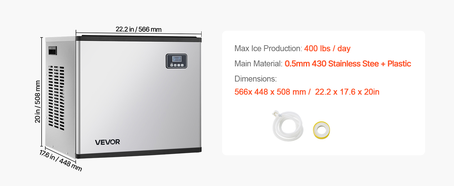 | Maximálna výroba ľadu | 400 libier (181,4 kg) / deň |
