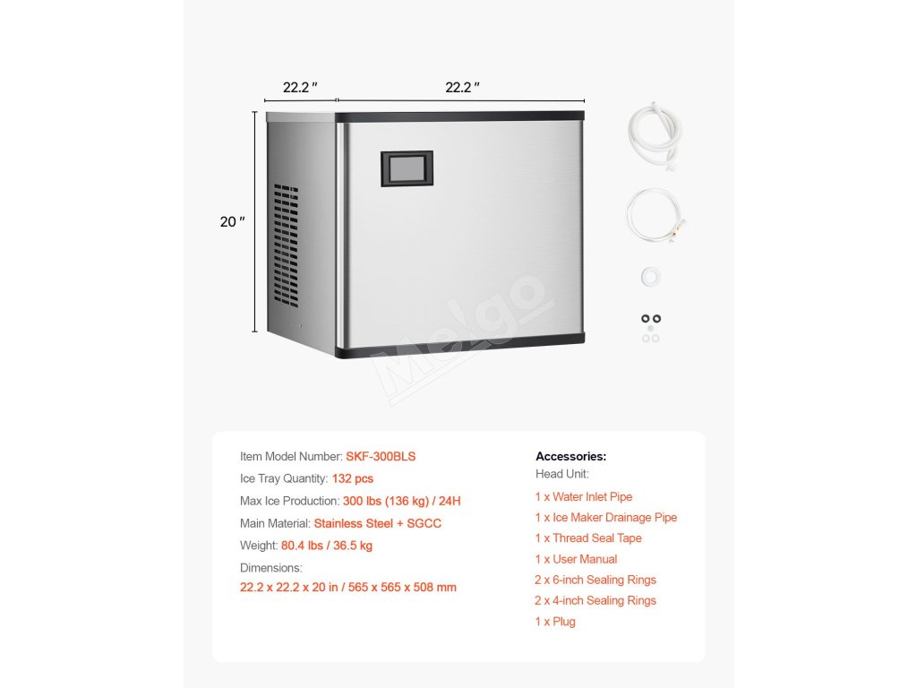 | Maximálna výroba ľadu | 300 libier (136 kg) / 24 hodín |