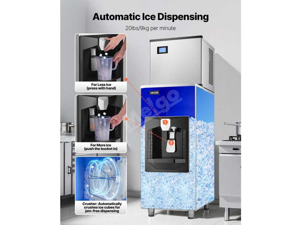 Chcete chladený a osviežujúci ľad? Komerčný výrobník ľadu VEVOR vyrobí 300 libier kociek ľadu každých 24 hodín. Môže sa pochváliť veľkou kapacitou 180 lbs a dlhším tepelnoizolačným účinkom, čo zaručuje nepretržitý prísun ľadu, ktorý je pripravený na podávanie.
