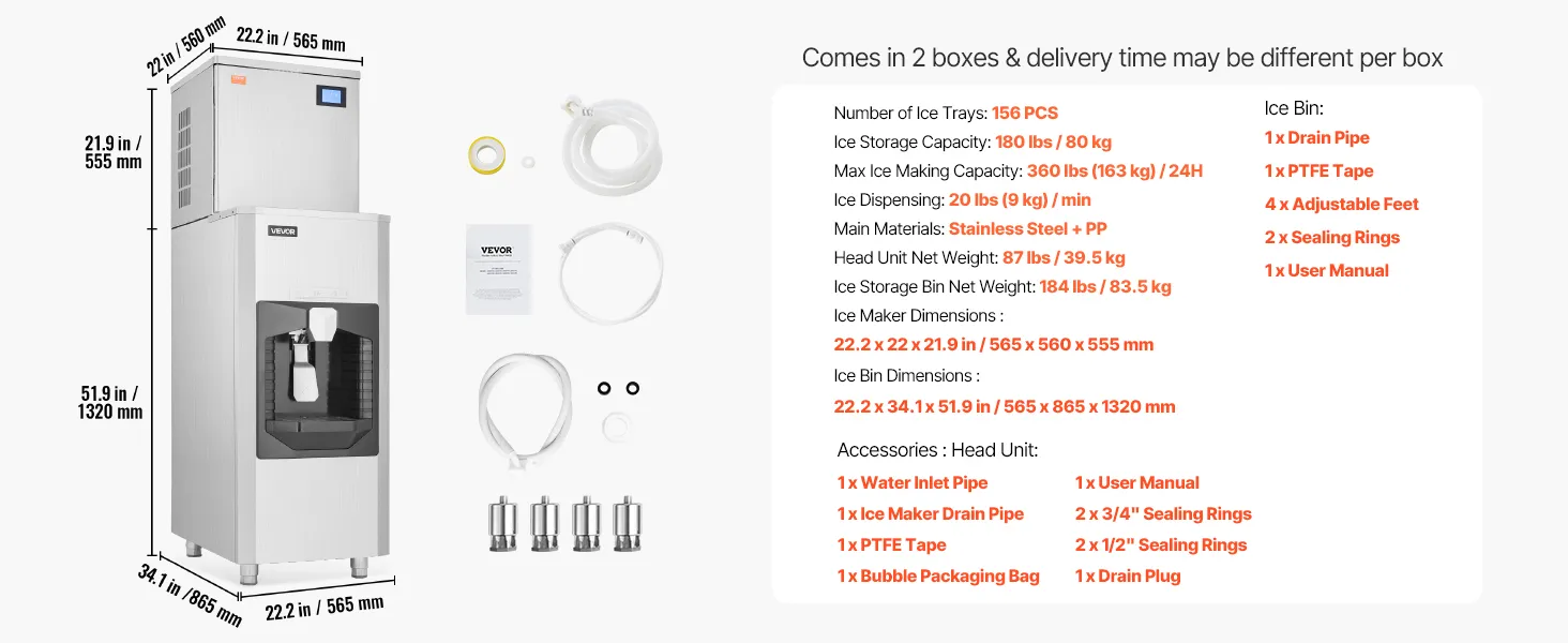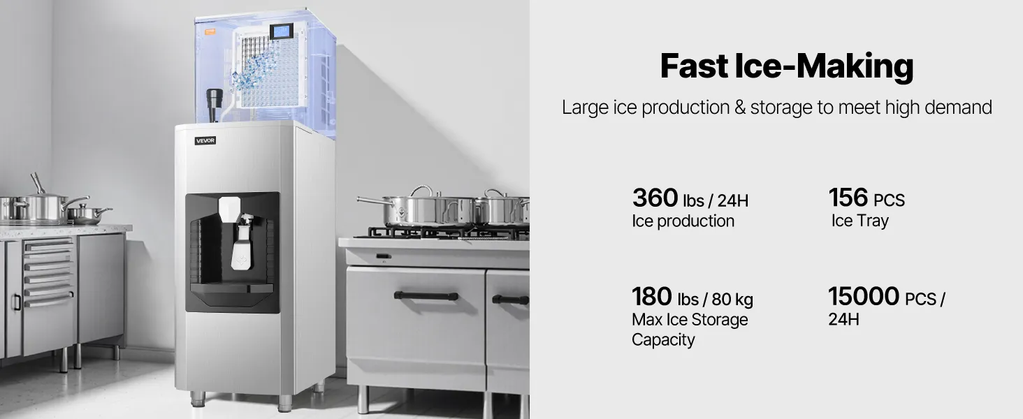 Chcete chladený a osviežujúci ľad? Komerčný výrobník ľadu VEVOR vyrobí 360 libier kociek ľadu každých 24 hodín. Môže sa pochváliť veľkou kapacitou 180 lbs a dlhším tepelnoizolačným účinkom, čo zaručuje nepretržitý prísun ľadu, ktorý je pripravený na podávanie.