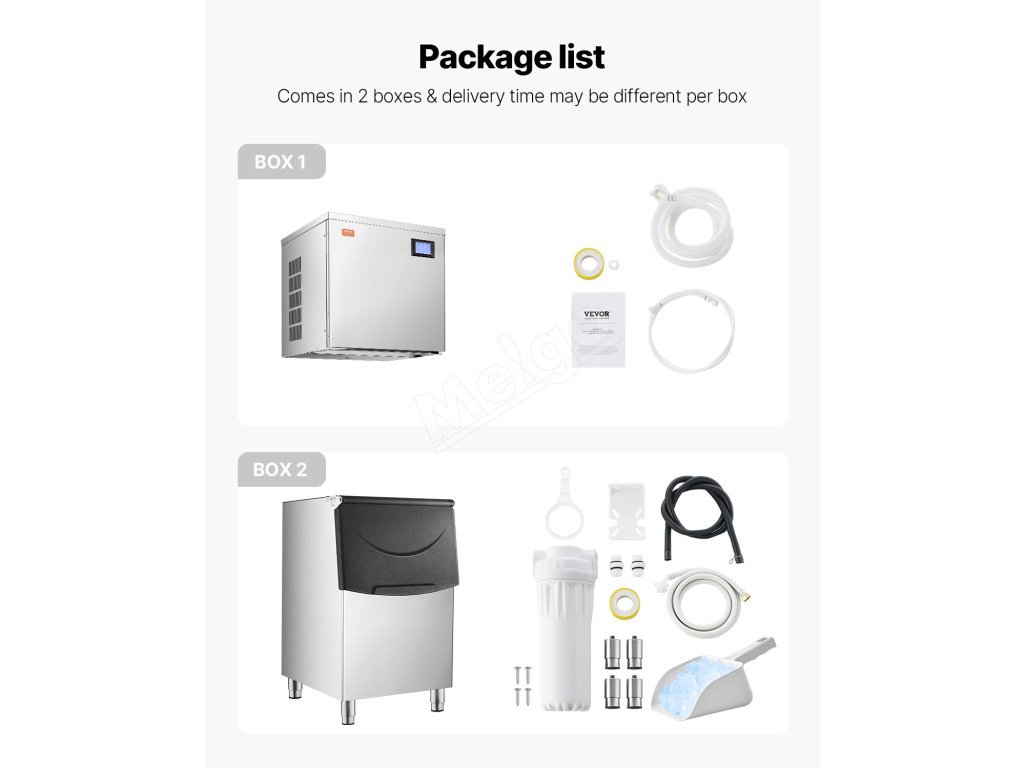 Komerčné výrobníky ľadu sa zvyčajne skladajú z dvoch hlavných častí: hlavnej jednotky na výrobu ľadu a zásobníka na ľad. Táto konštrukcia poskytuje zvýšenú flexibilitu a účinnosť, takže je ideálna pre podniky, domáce kuchyne alebo špecializované aplikácie.