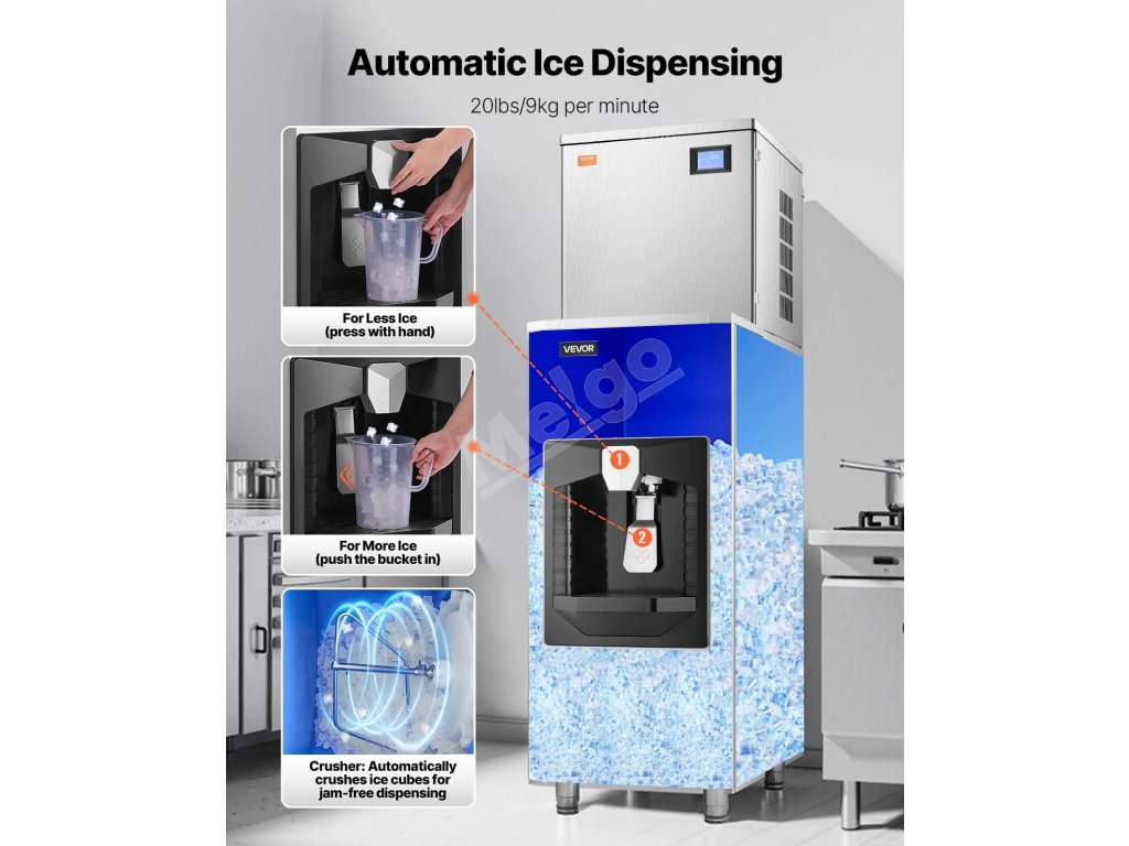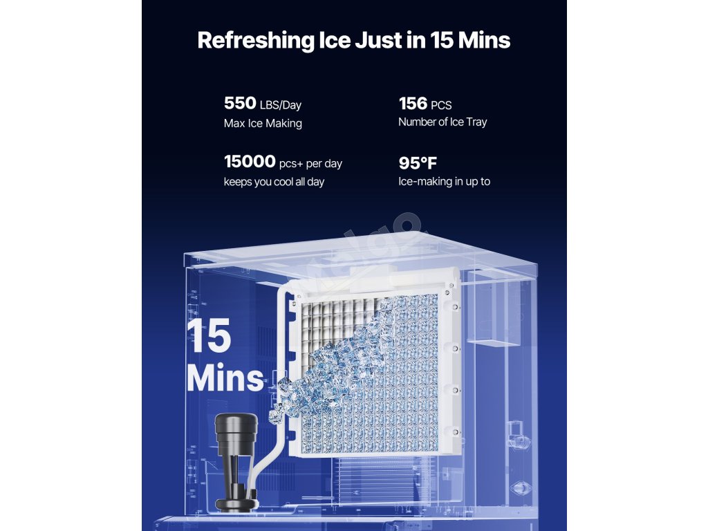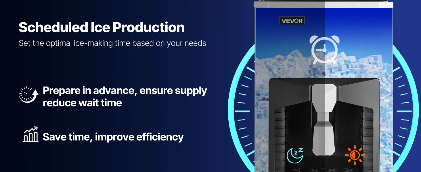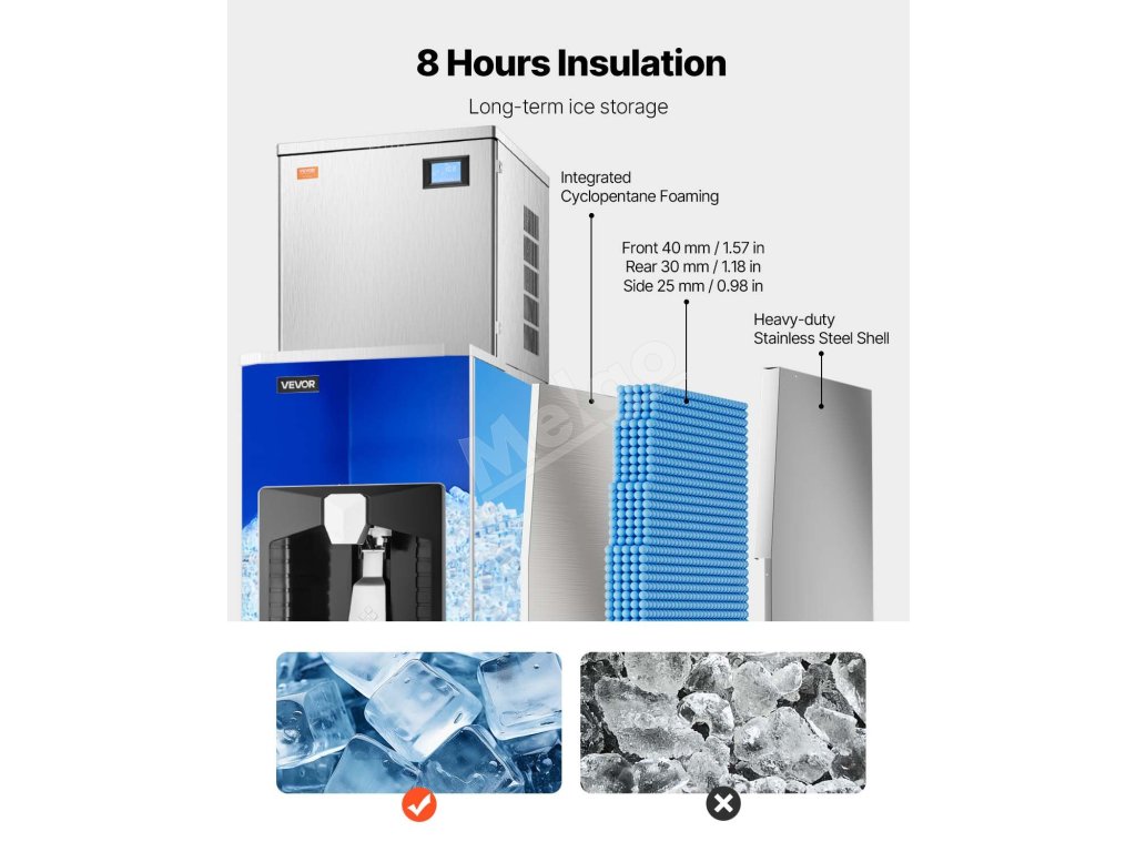 Chcete chladený a osviežujúci ľad? Komerčný výrobník ľadu VEVOR vyrobí 550 libier kociek ľadu každých 24 hodín. Môže sa pochváliť veľkou kapacitou 180 lbs a dlhším tepelnoizolačným účinkom, čo zaručuje nepretržitý prísun ľadu, ktorý je pripravený na podávanie.