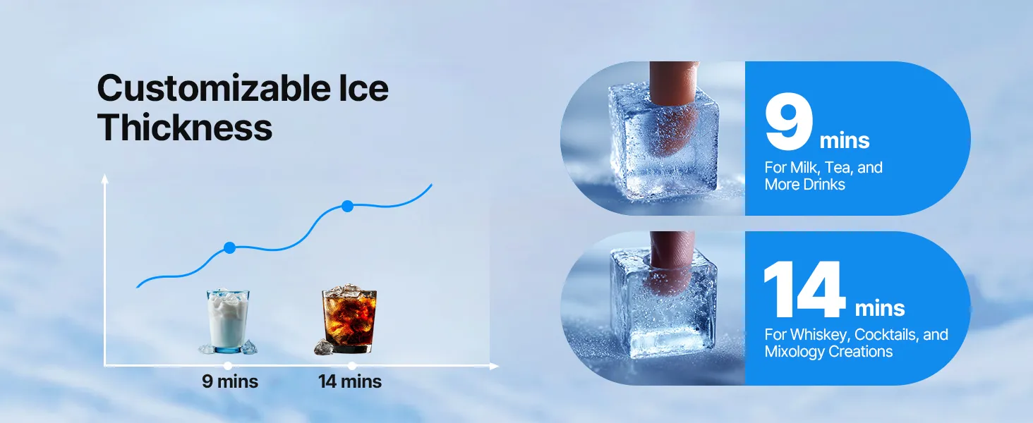 | Nastaviteľná hrúbka ľadu | Možnosti hrubého a tenkého ľadu |
