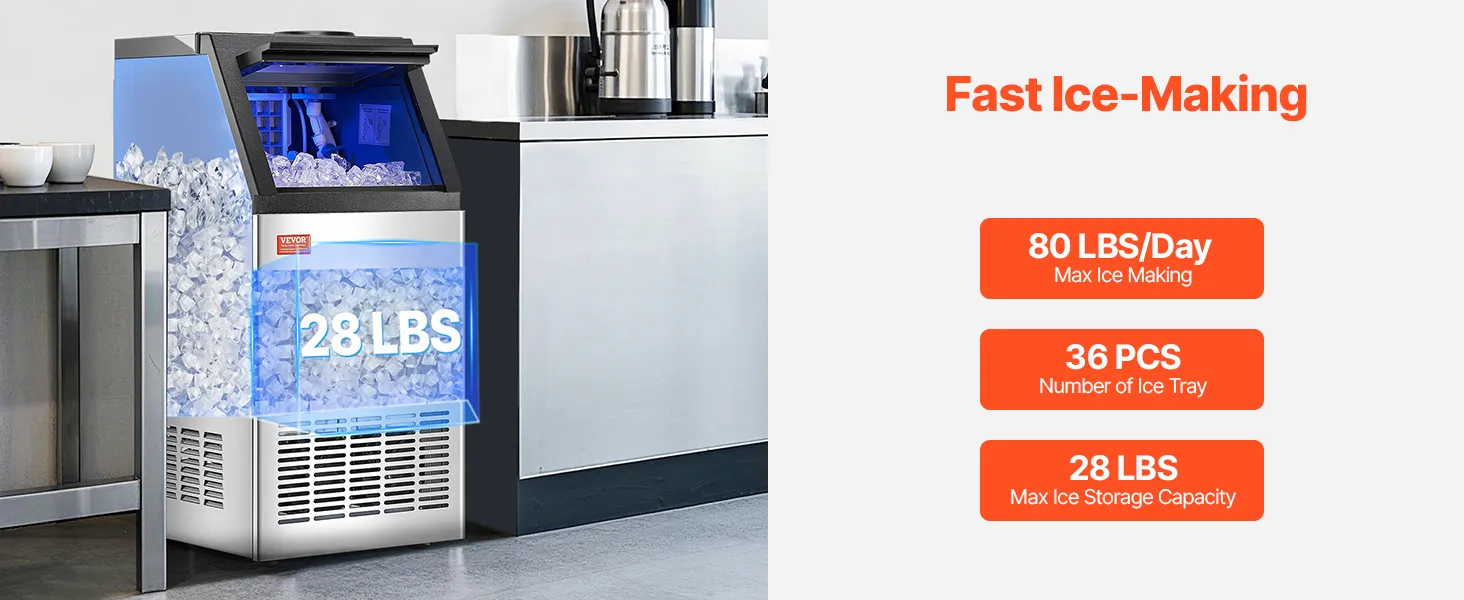 Výrobník ľadu 80lbs/24h, 28lbs zásobník, 36 kociek/15 min, led displej