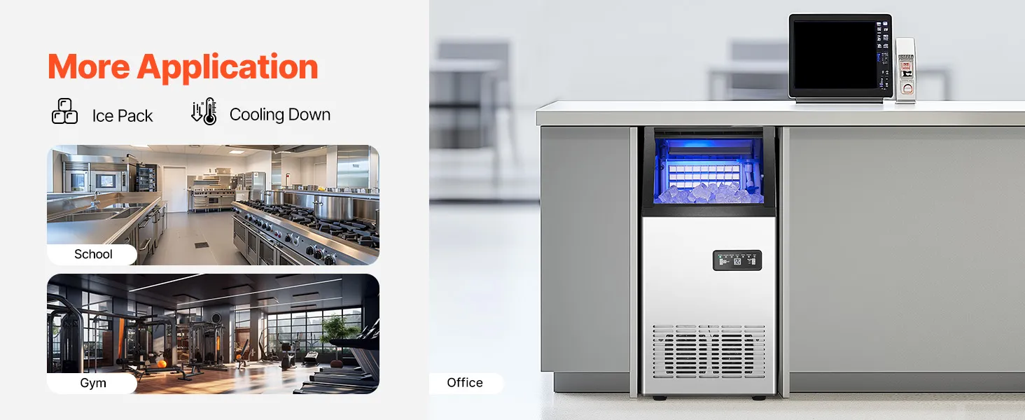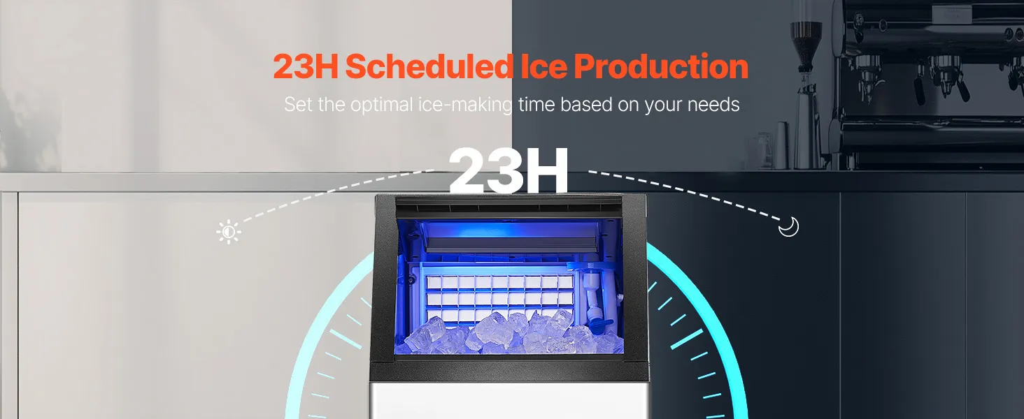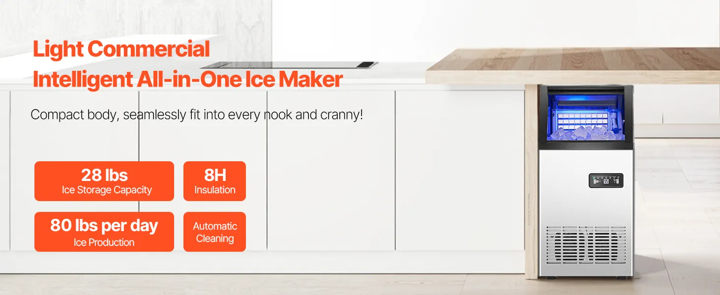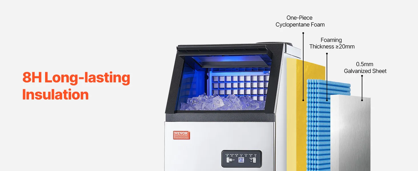 Náš komerčný výrobník ľadu vyrobí 80 libier kociek ľadu denne a vďaka 8-hodinovej izolačnej funkcii môžete mať kocky ľadu kedykoľvek budete chcieť.