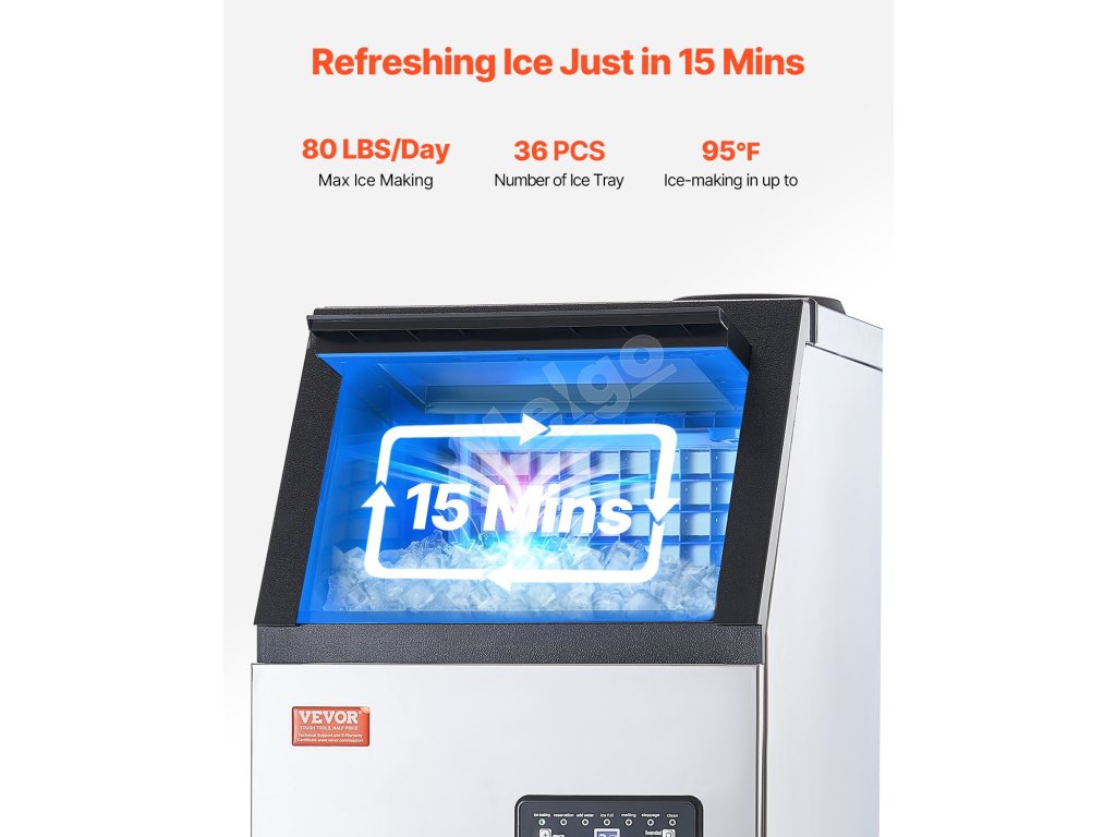 Výrobník ľadu 80lbs/24h, 28lbs zásobník, 36 kociek/15 min, led displej