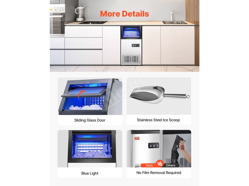 Náš komerčný výrobník ľadu vyrobí 80 libier kociek ľadu denne a vďaka 8-hodinovej izolačnej funkcii môžete mať kocky ľadu kedykoľvek budete chcieť.