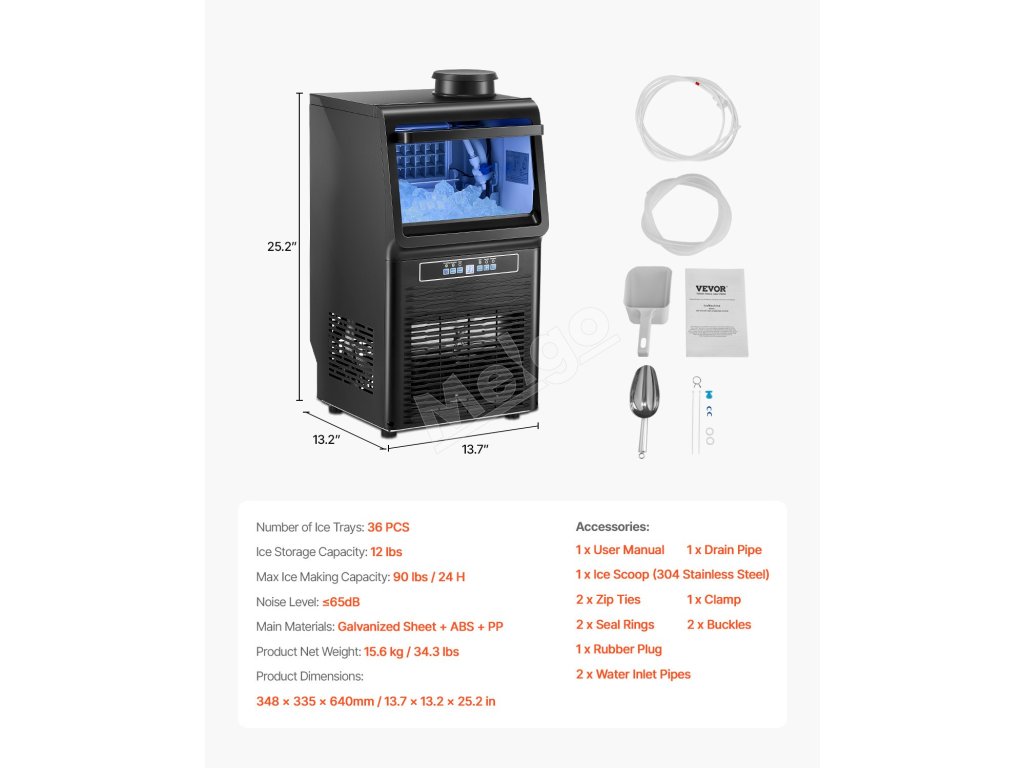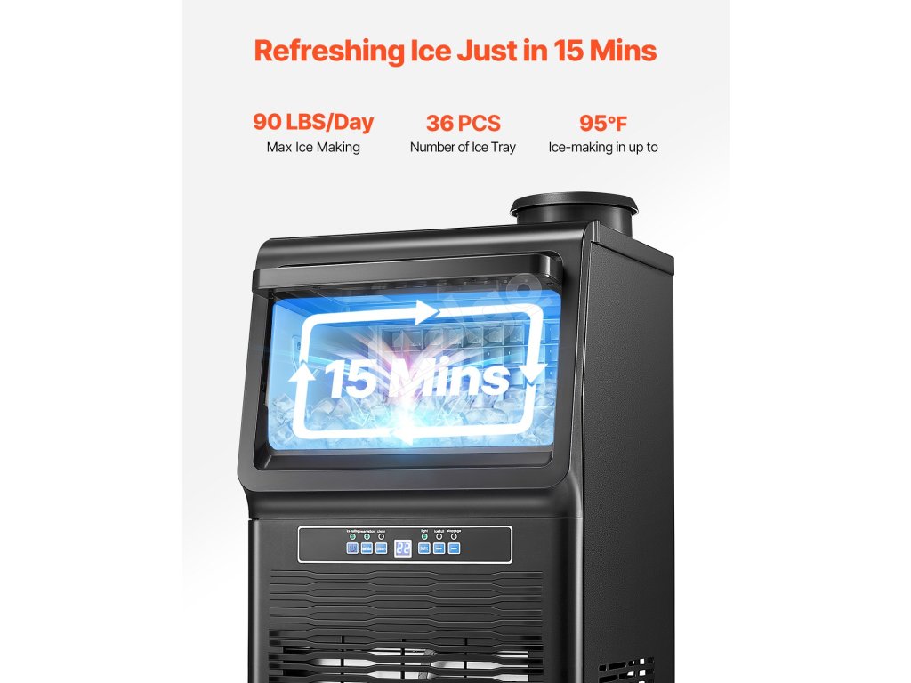 Výrobník ľadu 90lbs/24H 36 kociek/15min 12lbs led samočistenie