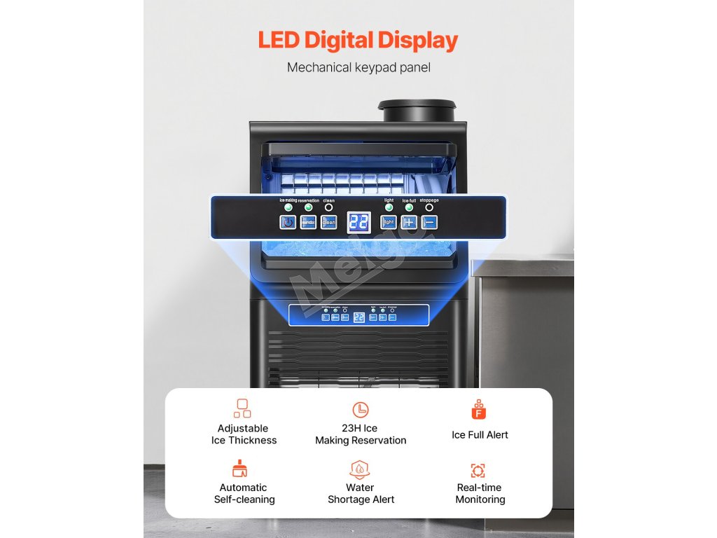 Náš komerčný výrobník ľadu vyrobí 90 libier kociek ľadu za deň a vďaka 8-hodinovej izolačnej funkcii môžete mať kocky ľadu kedykoľvek budete chcieť.