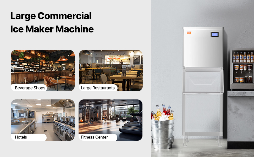 Výrobník kociek ľadu poskytuje veľký výkon ľadu, vďaka čomu je ideálny pre komerčné kuchyne, reštaurácie, bary, hotely a predajne nápojov.