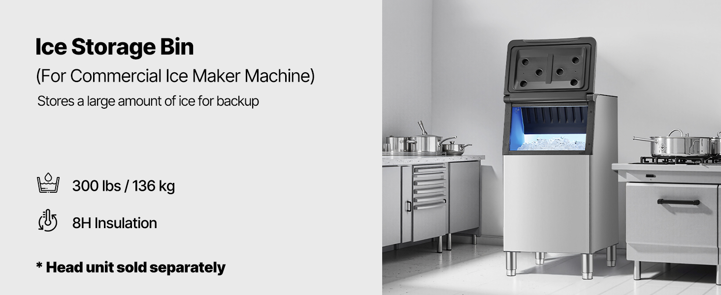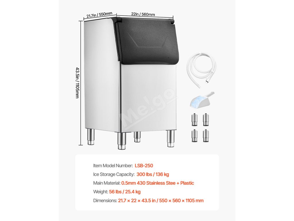 Tento zásobník na ľad v komerčnom výrobníku ľadu pojme až 300 libier / 136 kg ľadu, čím zabezpečí dostatočné zásoby pre vaše potreby.