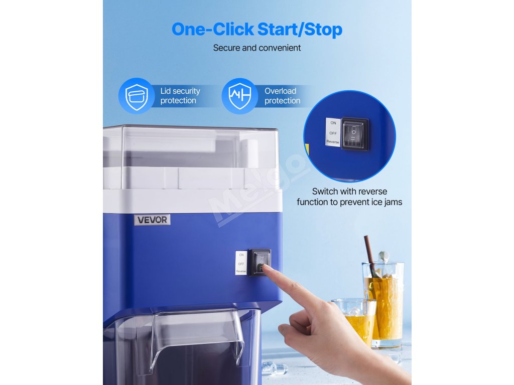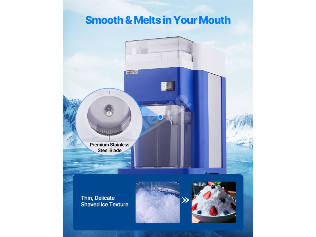 Tento holiaci strojček na ľad je vybavený výkonným motorom a pokročilými čepeľami, ktoré účinne drvia ľad na jemnú, nadýchanú štruktúru. Ľahko sa používa a je ideálny pre predajne zákuskov, reštaurácie, večierky a objavovanie nekonečných možností ľadových pochúťok.