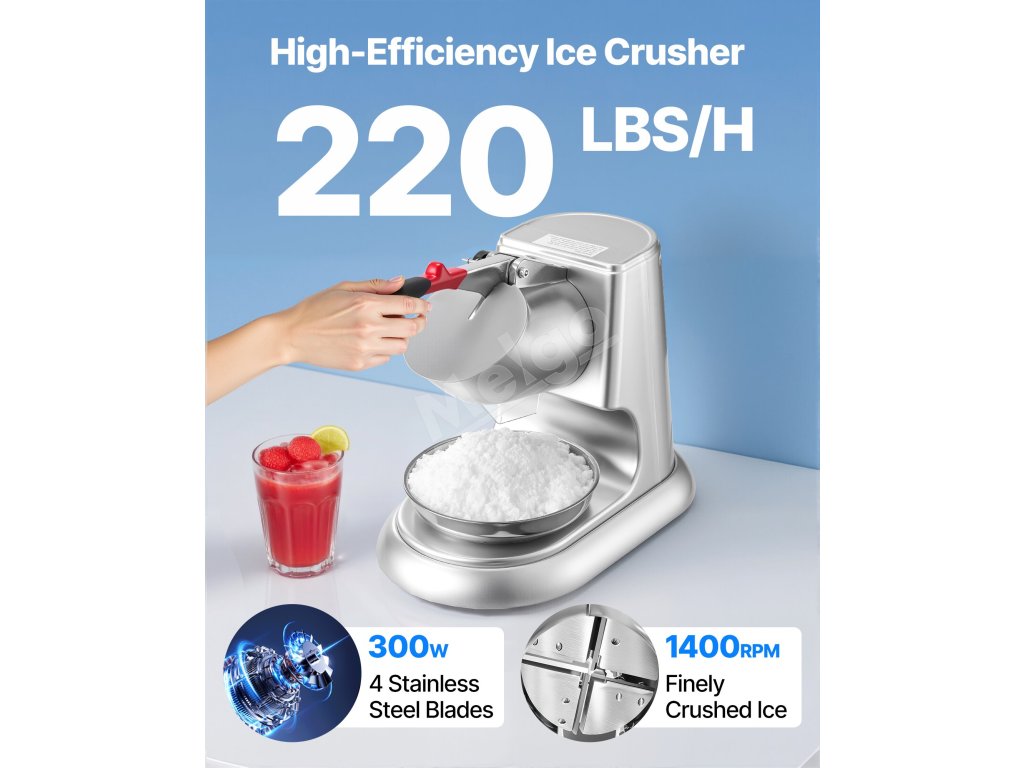 Stroj na drvenie ľadu 100kg/h 300W 4 nože nerez miskou a krytom