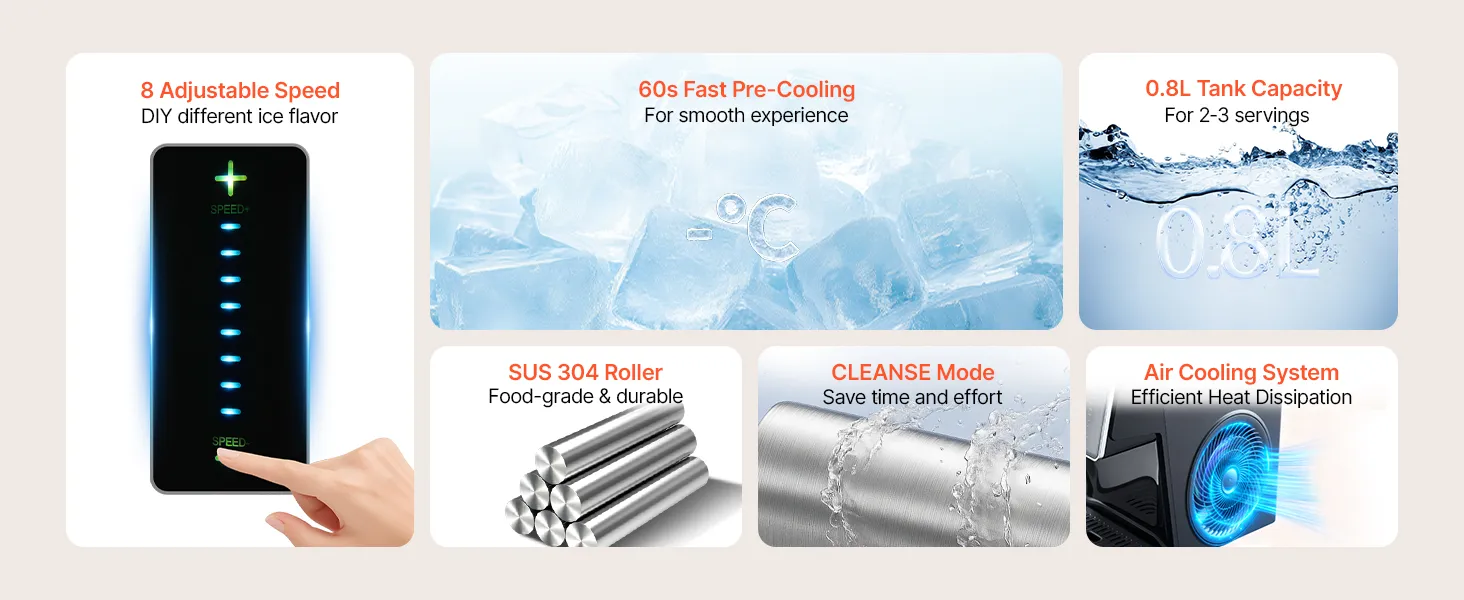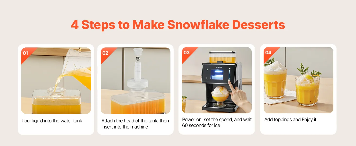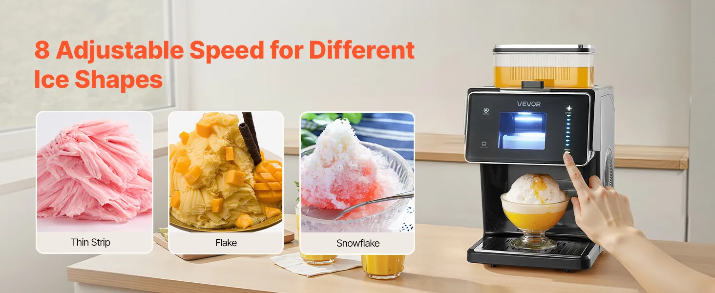 Tento výrobník ľadu v tvare snehovej vločky vám umožní jednoducho vytvárať hladké, nadýchané ľadové dezerty a nápoje v domácnosti s použitím vody, mlieka, džúsu, sódy atď., takže je ideálny na rodinné použitie, malé stretnutia alebo zábavu s priateľmi, pričom jeho kompaktný a používateľsky prívetivý dizajn zaručuje zábavnú a pohodlnú prípravu osviežujúcich pochúťok.