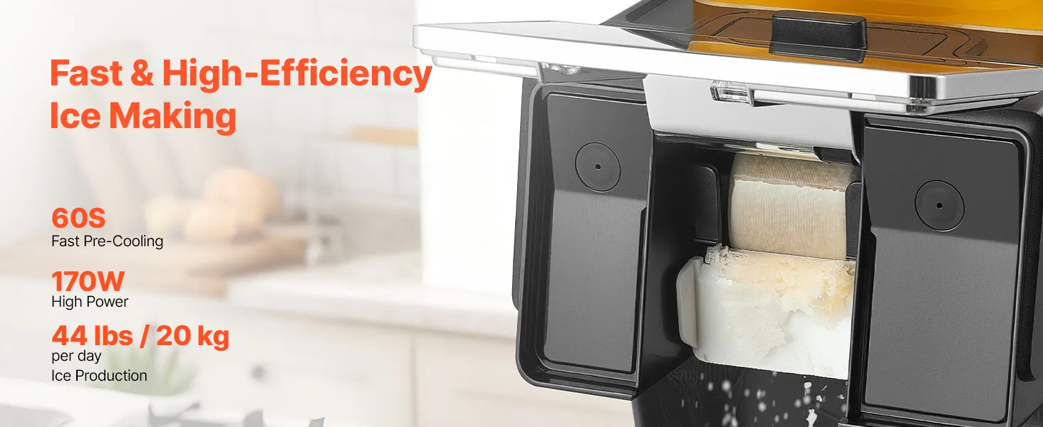Stroj na snehový ľad 20kg/24h, 0.8l nádrž, nerezová čepeľ, 60s